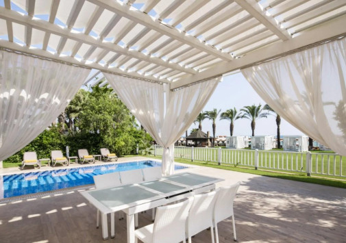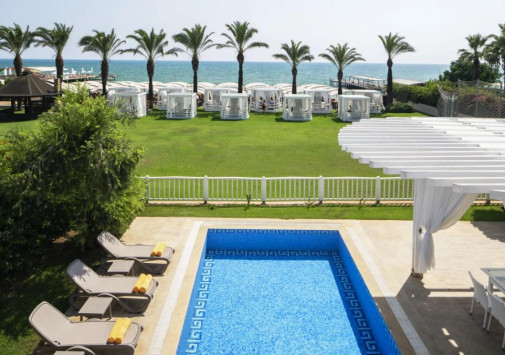 Частный песчаный пляж длиной 150 м с душевыми и кабинками для переодевания. Предоставляются шезлонги, полотенца и зонты от солнца.