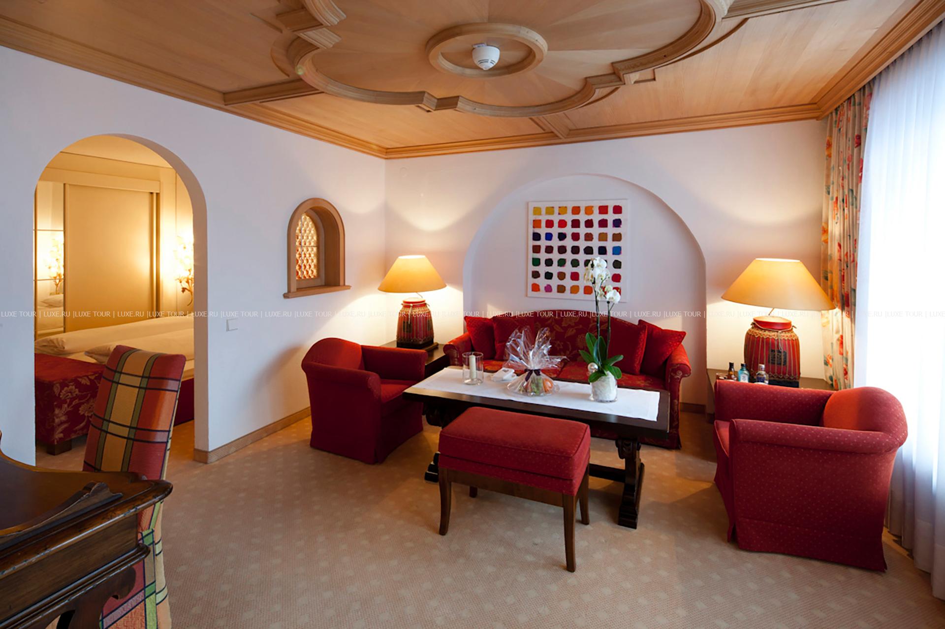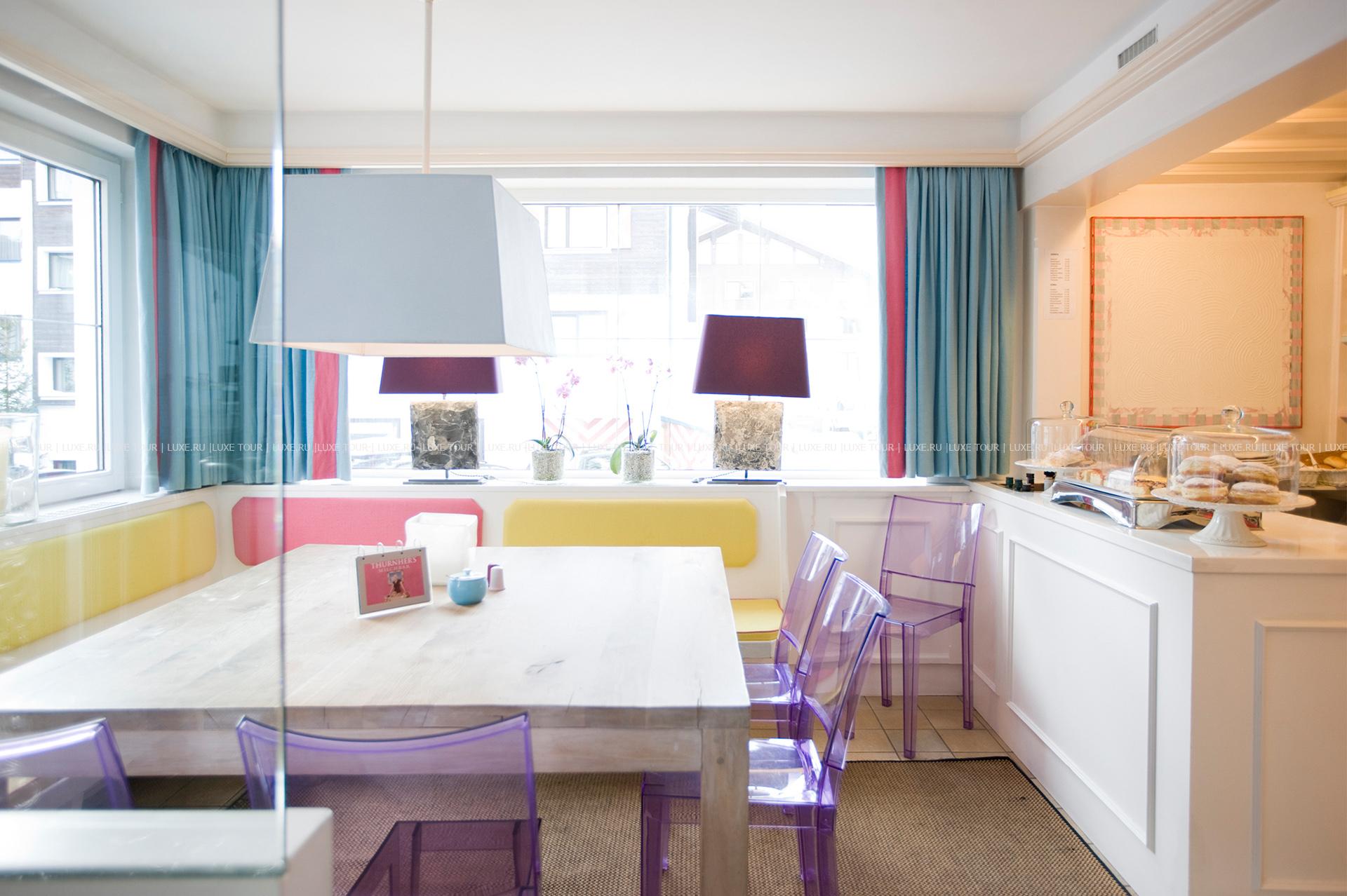 Thurnhers Alpenhof, построенный в традиционном альпийском стиле и принадлежащий семье Thurnher-Zarges, расположен среди сверкающих снегом горных склонов с многочисленными лыжными трассами, на популярном горнолыжном курорте Цюрс. В номерах, оборудованных по последним технологиям, — элегантные интерьеры с ковровым покрытием на полах, удобной изящной мебелью, изысканными элементами декора, оригинальными произведениями искусства, из номеров открывается великолепный вид на окружающие ландшафты. В отеле открыт Оздоровительный Центр, включающий крытый бассейн, сауну, парную, солярий, фитнес-зал, зал для релаксации, массажный кабинет, кабинет маникюра и педикюра. Расположение Thurnhers Alpenhof обеспечивает большой выбор различных видов спорта, в самом отеле предлагаются занятия аэробикой и stretching, аква-аэробикой, йогой, tai chi, shiatsu и qigong, настольный теннис, развлекательные и музыкальные программы.