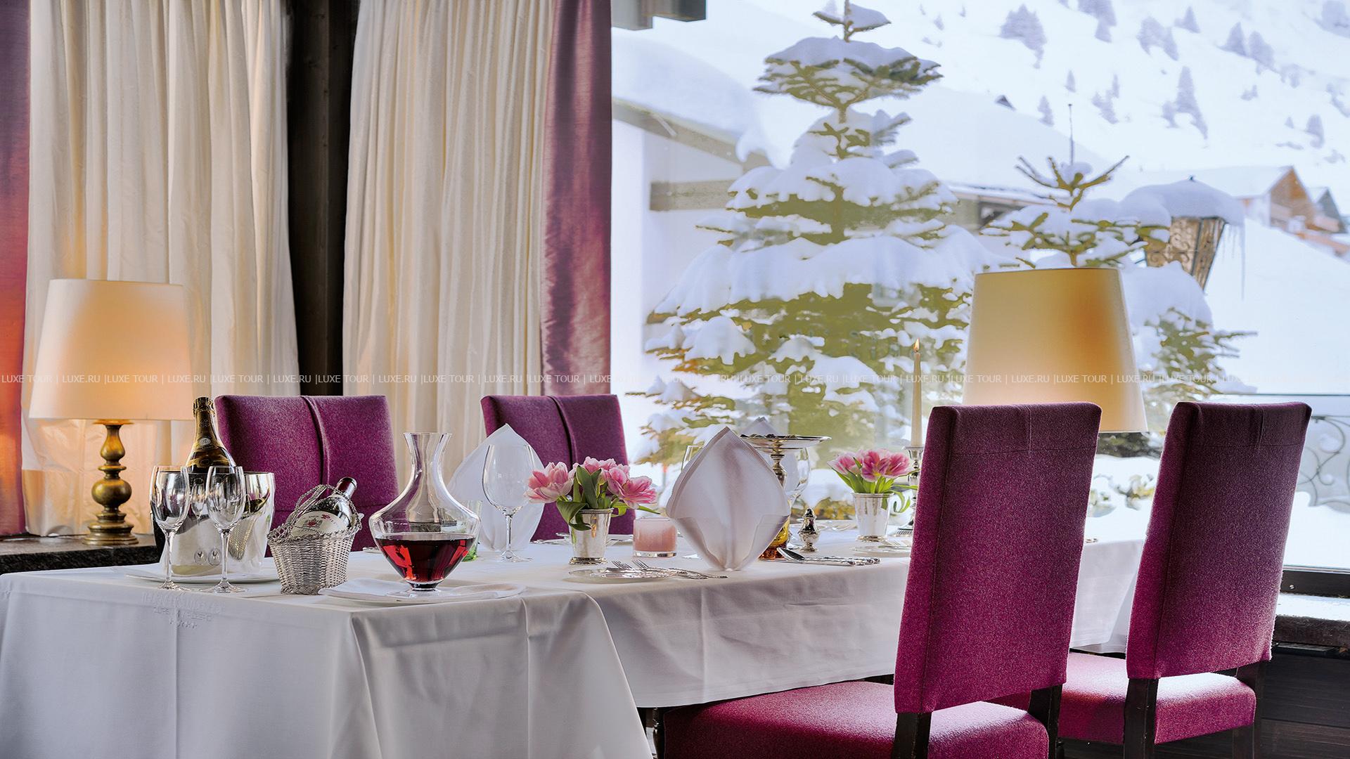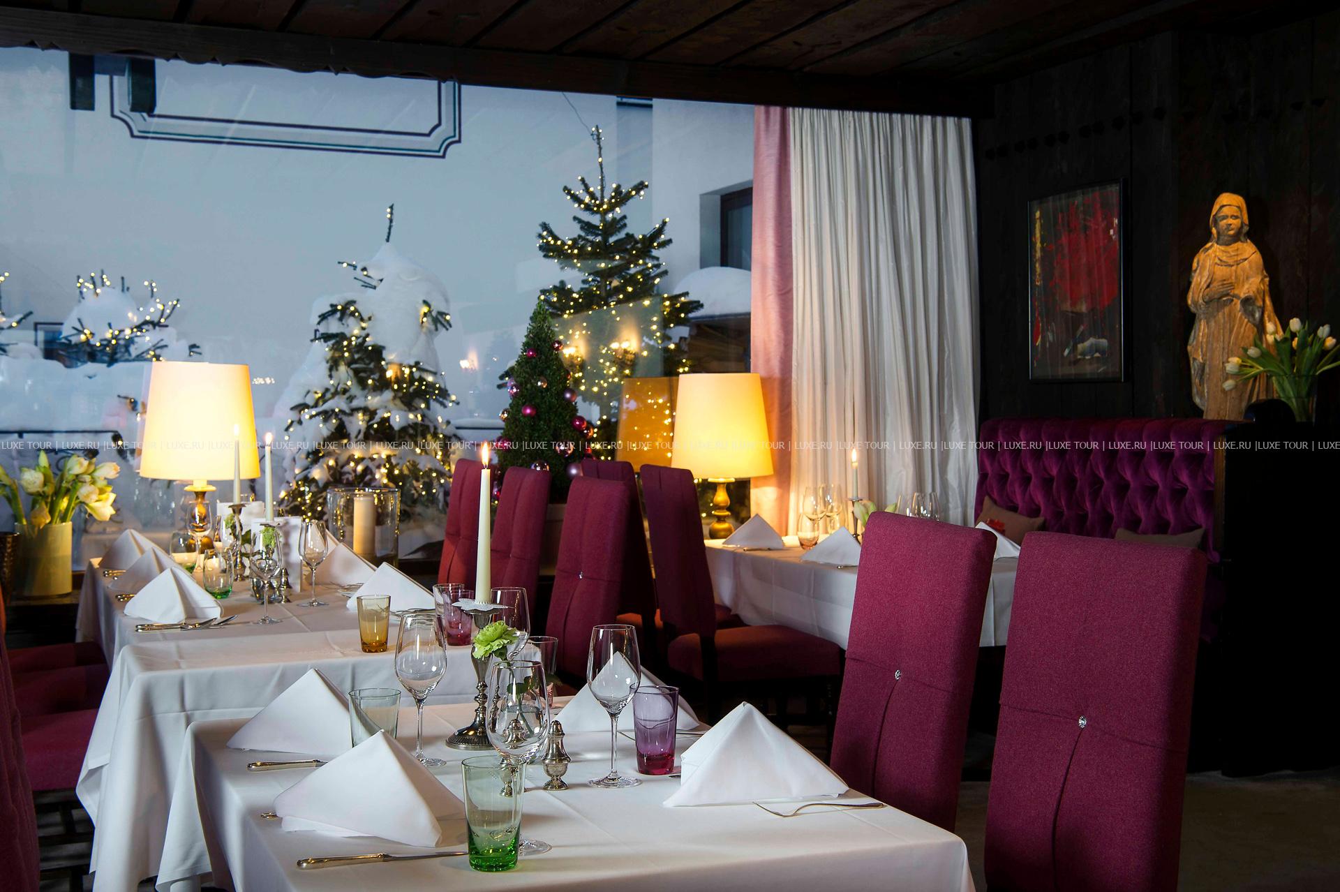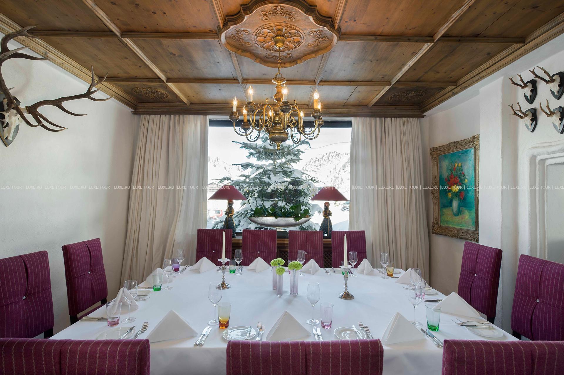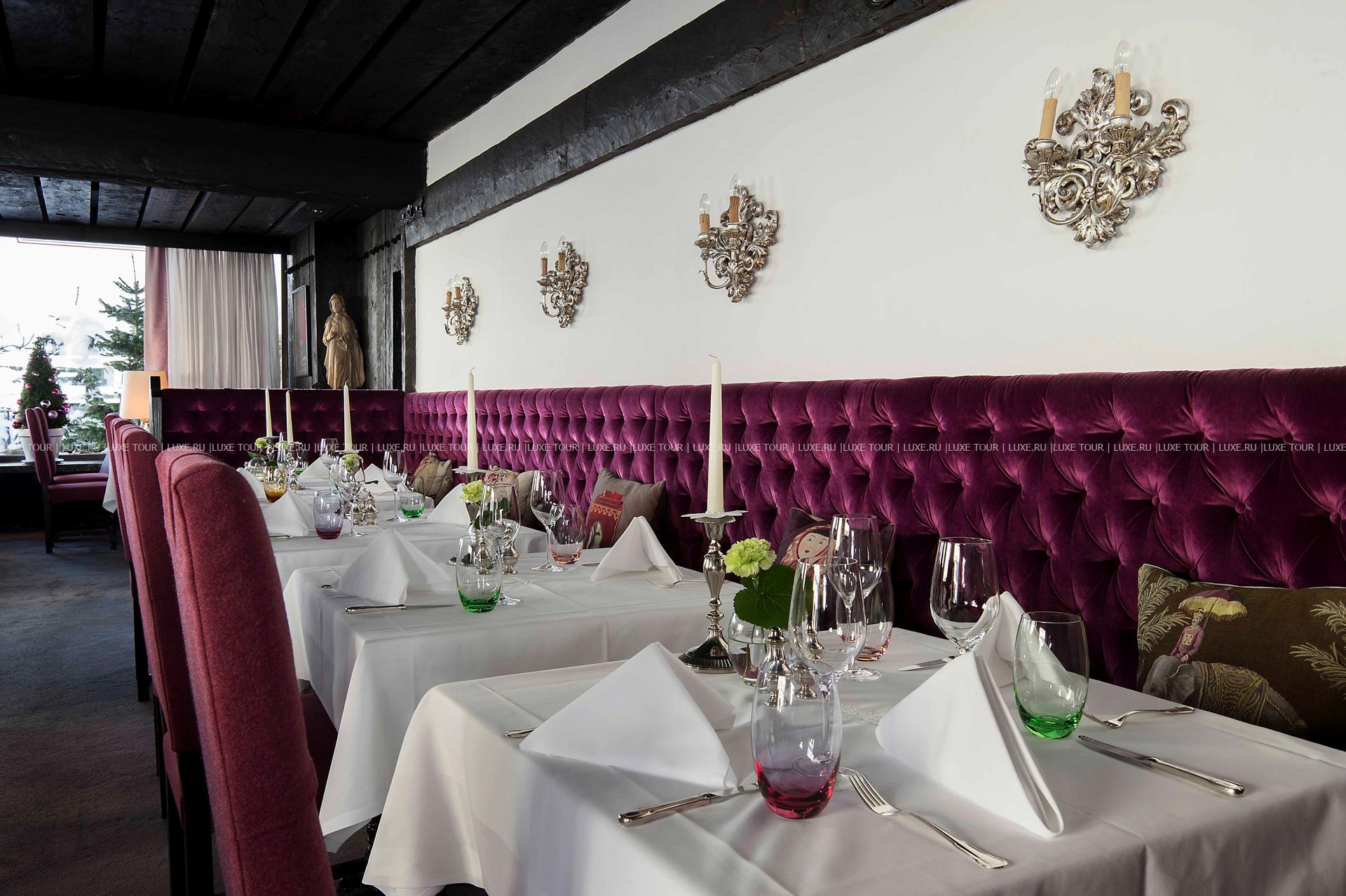 Для маленьких гостей также предусмотрены специальные спортивные и развлекательные мероприятия. В элегантном ресторане отеля предложено разнообразие изысканных блюд австрийской и интернациональной кухонь, приготовленных из отборных продуктов, а также богатая карта вин, также здесь устраиваются традиционные австрийские вечера «Heurigen» с живой музыкой, итальянские вечера, гала-ужины и вечера-фондю. Уютный Piano-Bar с камином — приятное место для отдыха, где звучит фортепианная музыка, и подаются первоклассные напитки и коктейли. В стильном бистро Milchbar, расположенном рядом с отелем, напротив подъемника, можно не только отведать деликатесы и оригинальные легкие закуски, свежайшую выпечку и аппетитные десерты, но и взять что-нибудь с собой, чтобы подкрепиться во время катания на лыжах.