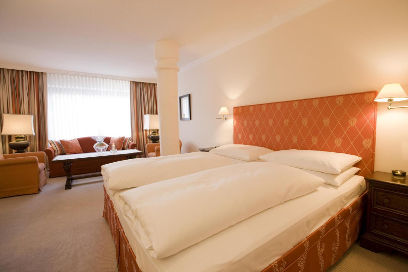- В отеле 41 комфортабельный номер различных категорий, 15 Guest Rooms 16 Suites: Single Room, Double Room, Junior Suite, Junior Suite with Fireplace, Suite, Suite with Fireplace, Suite with Whirlpool, Suite with 2 Bedrooms. В номерах — элегантные интерьеры с ковровым покрытием на полах, удобной изящной мебелью, изысканными элементами декора, оригинальными произведениями искусства, из номеров открывается великолепный вид на окружающие ландшафты. В некоторых номерах Suite имеются камины, джакузи, к услугам гостей — Suite с 2 спальнями и 2 ванными комнатами.
