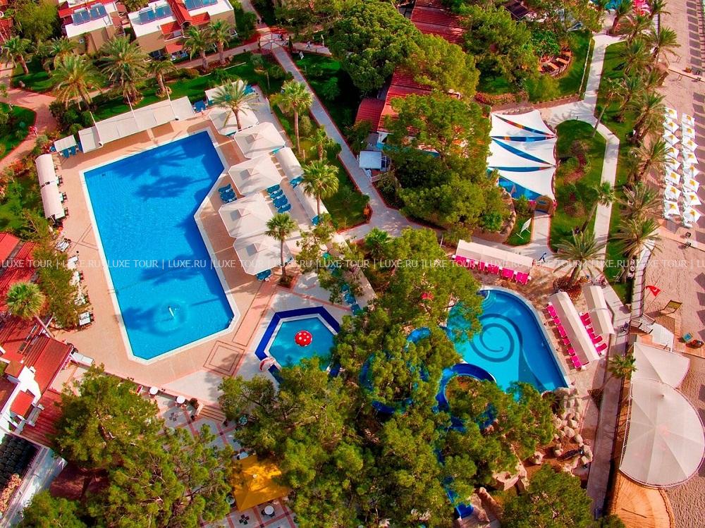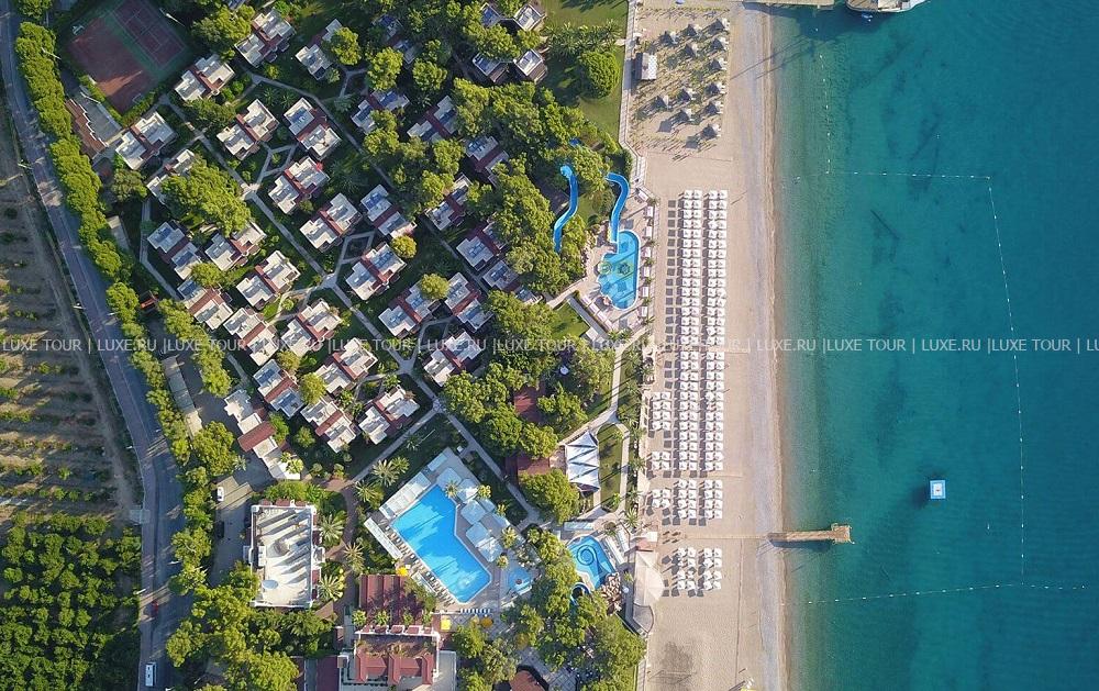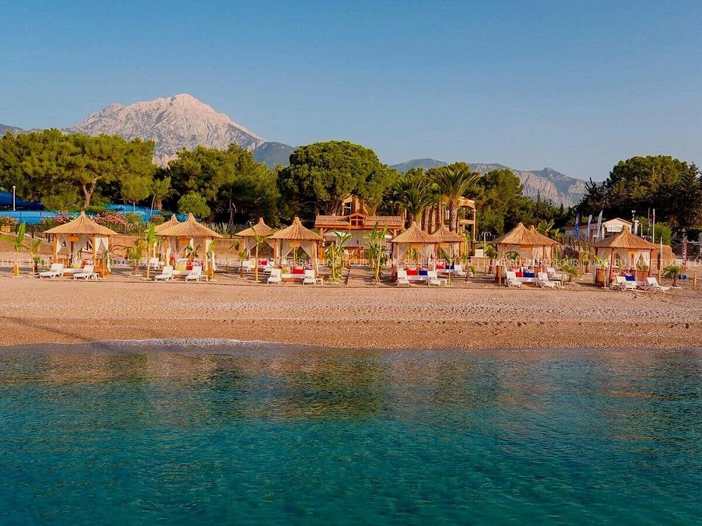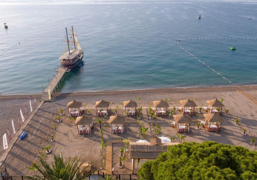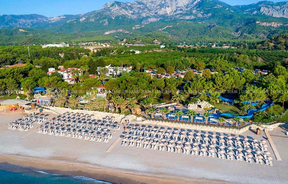 Pirate's Beach Club расположен в Текирова, у подножия легендарной горы Тахталы, прямо посреди древних городов Олимпос и Фазелис, на побережье, в 18 км от Кемера. Гостей встречает оформленное в «морском» стиле лобби, интересной деталью которого является деревянный корпус корабля, вмонтированный в стойку. Морская тема также прослеживается в оформлении всего комплекса, в ресторанах и барах. Номера расположены в двухэтажных бунгало, разбросанных по территории и окруженных зелеными лужайками и садом. 250-метровый песчаный пляж отеля отмечен «голубым флагом» за чистоту и ухоженность. Кроме пляжного отдыха, к услугам гостей разнообразные виды спорта и развлекательная программа. В отеле есть несколько ресторанов, бары, бассейны, спа-центр, центр водных видов спорта, водные горки, торговый центр, клуб для детей, ежевечерняя развлекательная программа, парковка для автомобилей.