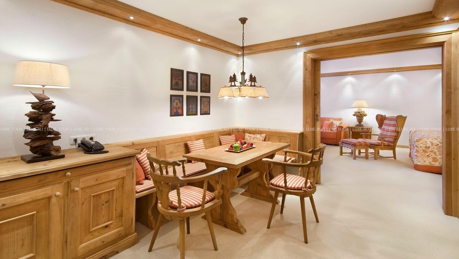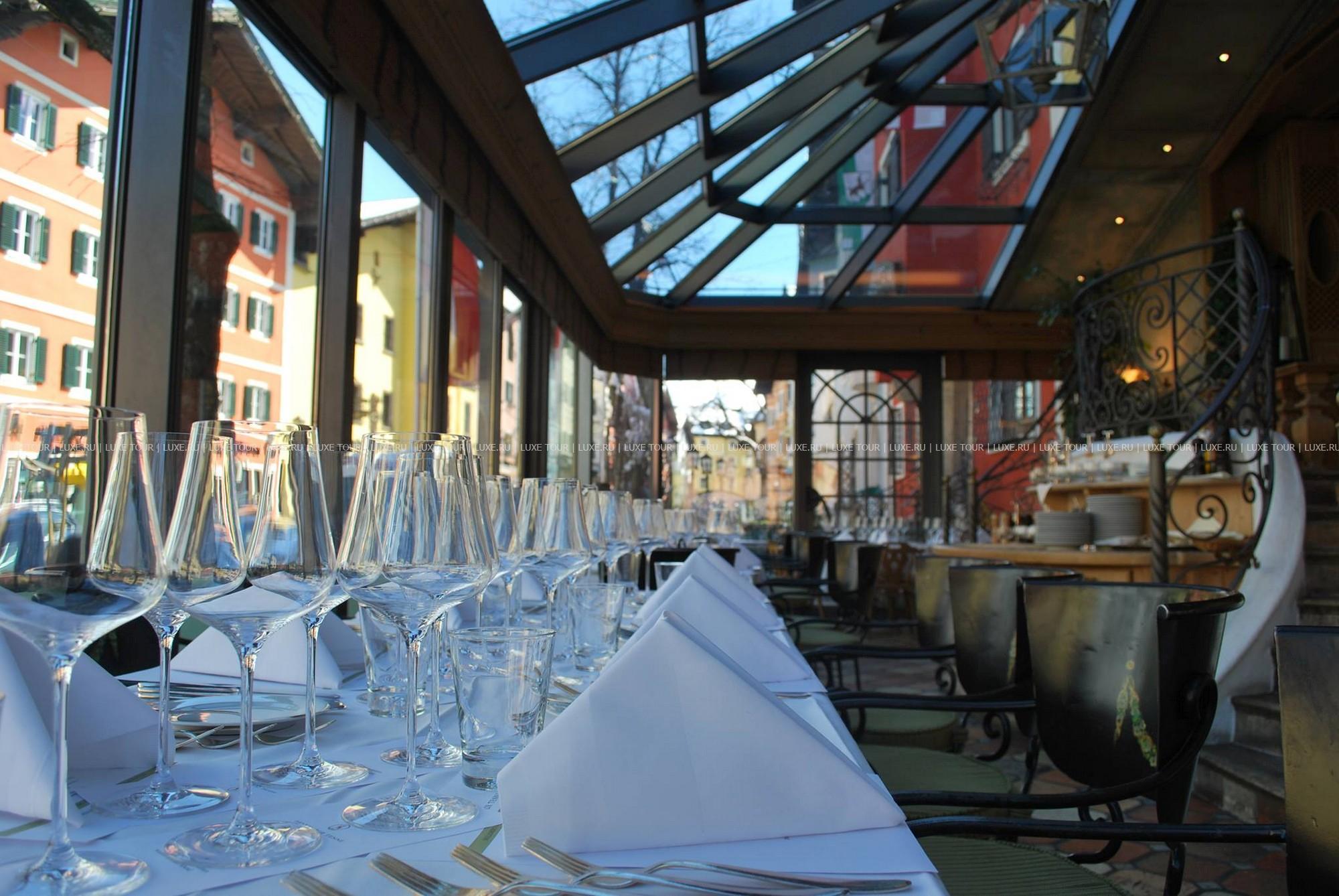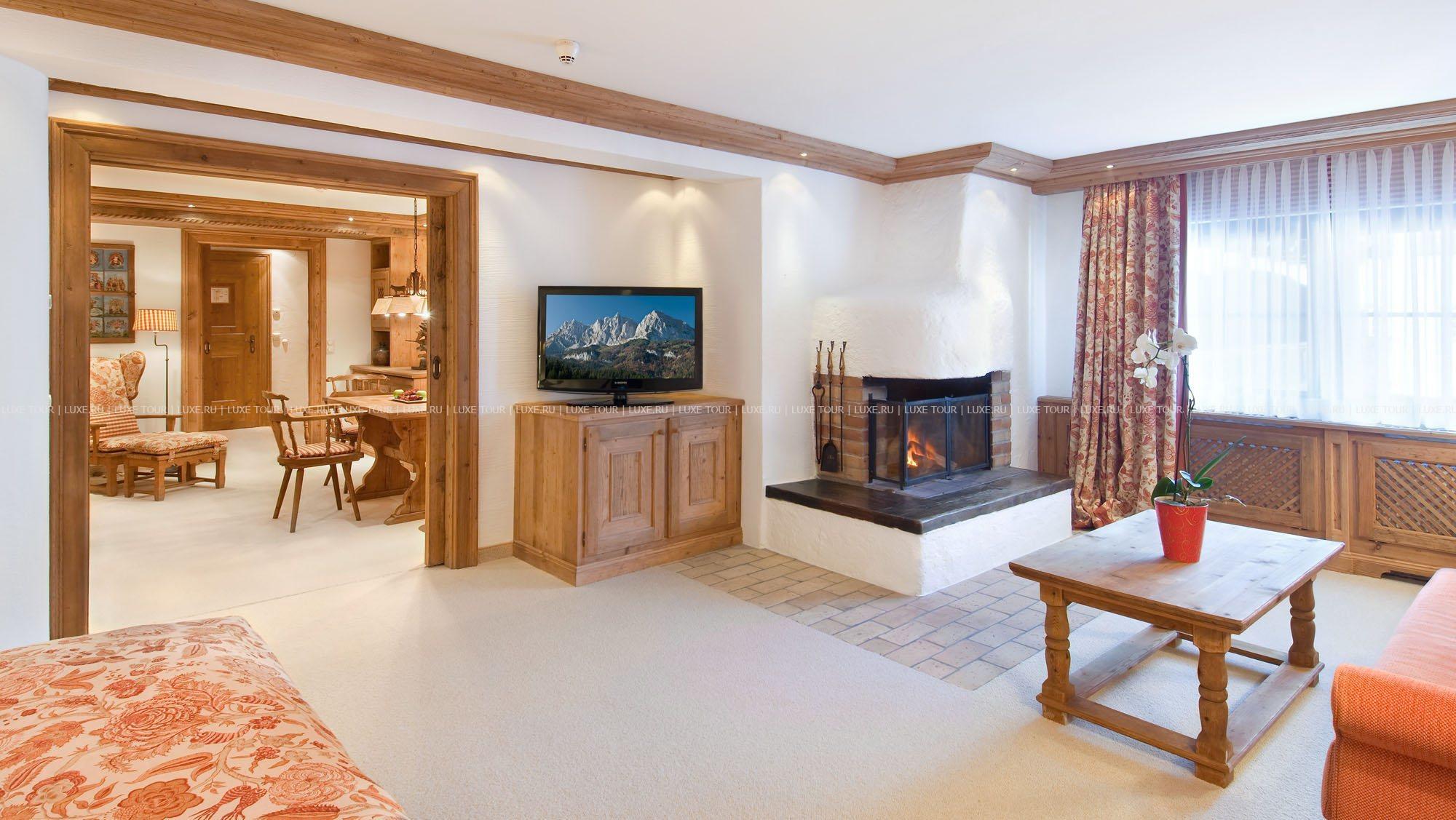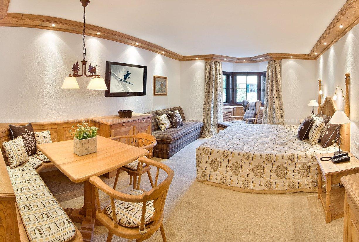 В комфортабельных номерах отеля — элегантные индивидуальные интерьеры в стиле загородного тирольского дома, с отделкой и резной мебелью из натурального дерева, коврами, обивкой и занавесками из тканей ярких расцветок, украшенные предметами старины и тщательно подобранными элементами декора, с балконов открывается чудесный вид на горные ландшафты. В Zur Tenne открыт Оздоровительный Центр с сауной, парной, 2 джакузи, купелью с холодной водой, гидромассажным душем, зоной отдыха с водопадом, тренажерным залом и массажным кабинетом. Элегантный ресторан включает каминный зал, охотничий зал, зимний сад и представляет деликатесы местной и интернациональной кухонь в сопровождении богатой карты вин, а лобби бар — популярное место отдыха и встреч. К услугам гостей — 4 зала для заседаний, бизнес-сервис, гараж. Zur Tenne — это не только уютный и комфортабельный семейный отель, но уникальная атмосфера далекого прошлого старинного Кицбюэля.