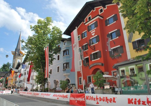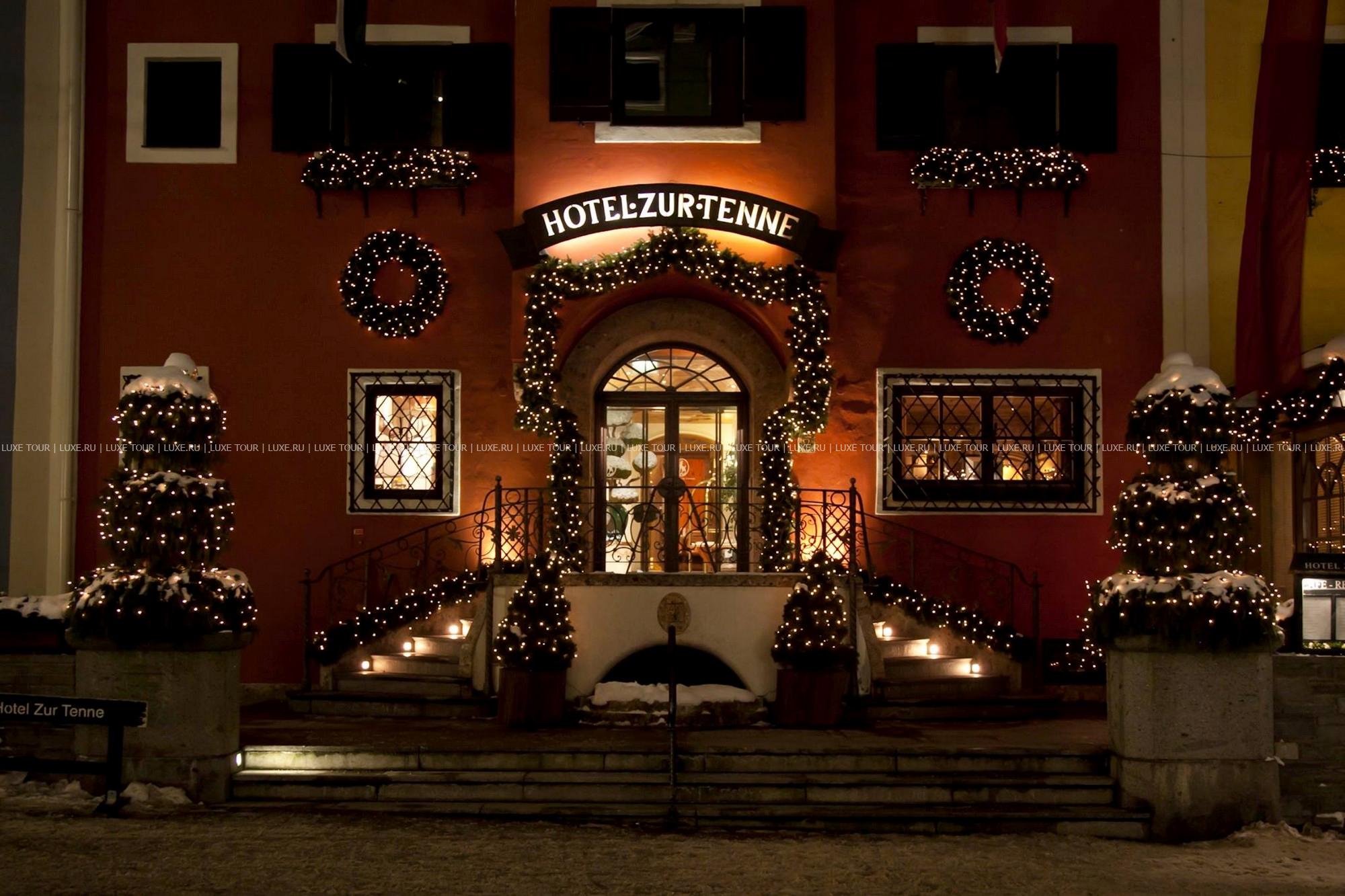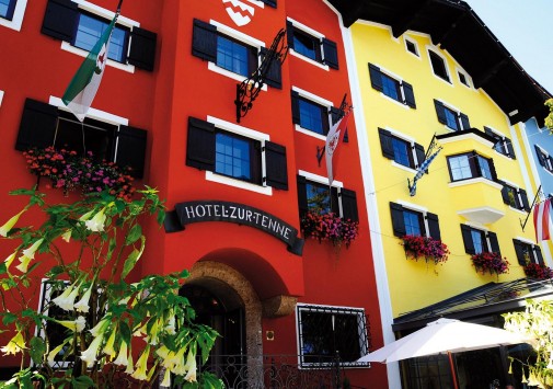 В тихом уголке Кицбюэля, совсем рядом с оживленным центром, пешеходной зоной, многочисленными барами, ресторанами и магазинами горнолыжного курорта, расположены два сообщающихся здания с яркими разноцветными фасадами, это — Zur Tenne, получивший своё название благодаря историческому месту в самом центре здания — нынешнему просторному холлу, где много веков назад находился ток (Tenne). Первое упоминание об отеле относится к 1543 году, тогда дом принадлежал мэру города, в 1969 году Zur Tenne приобрел Фолк Волкхард (Falk Volkhardt) и открыл комфортабельный семейный отель, бережно храня при этом историческое наследие этого старинного здания — здесь можно увидеть подлинные произведения антикварного искусства. За годы существования в отеле останавливались многие мировые знаменитости: Борис Беккер, братья Кличко, Ральф Шумахер, Адриано Челентано, Клаудия Кардинале, Арнольд Шварцнеггер.