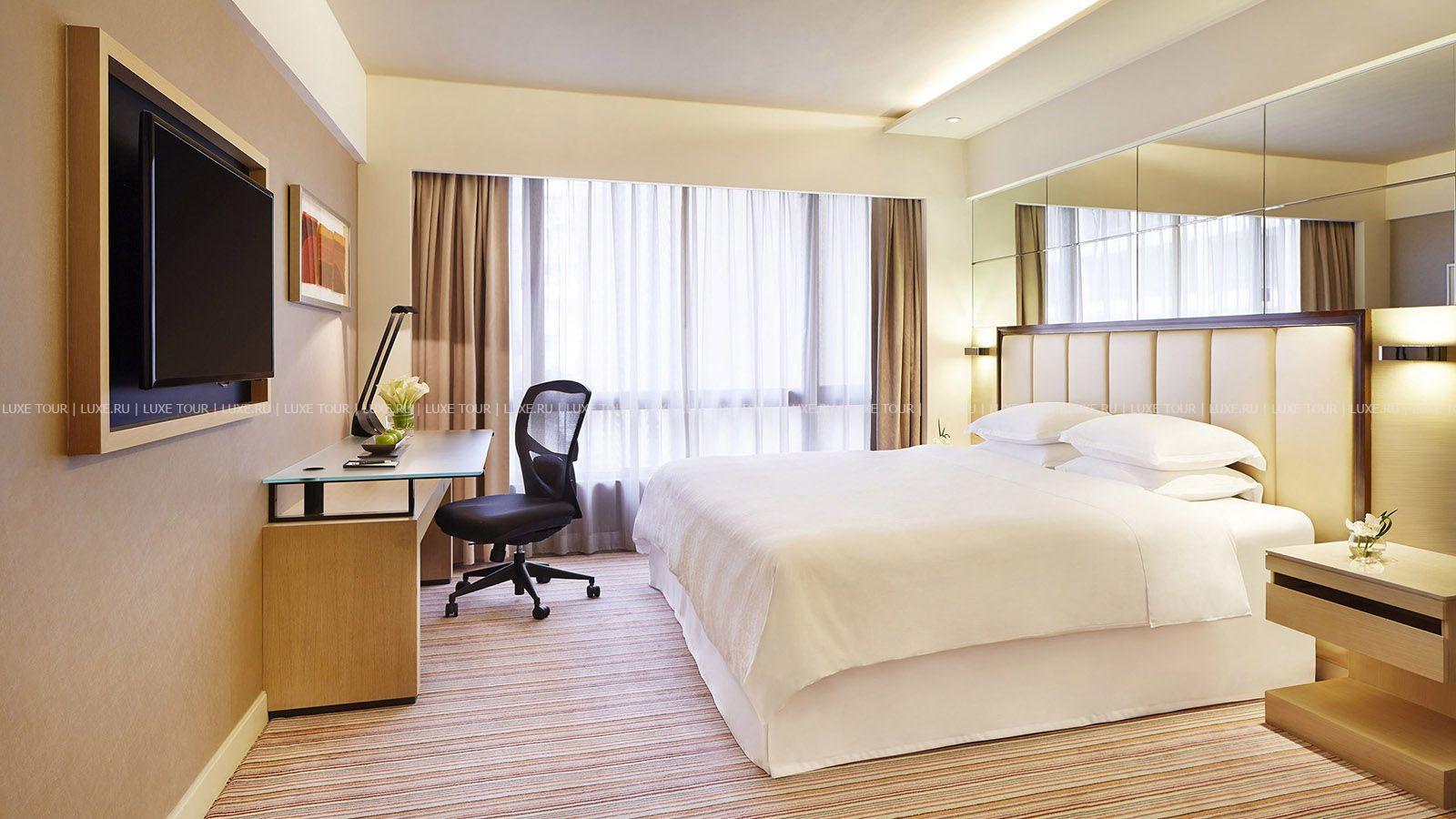 Современный комплекс отеля Sheraton Hong Kong Hotel & Towers расположен в самом центре Золотой Мили полуострова Каулун, знаменитого делового, коммерческого и культурного квартала Tsim Sha Tsui в двух шагах от парома, железнодорожной станции и станции метро. Гостиница прекрасно подходит как для деловых людей, так и для тех, кто приехал в Гонконг за покупками, новыми впечатлениями или в поисках бурлящей ночной жизни. Ведь отсюда рукой подать и до различных достопримечательностей, как, например, Гонконгский Музей Космонавтики, выставочный центр, Музей Искусств и Культурный Центр, так и до шикарных ресторанов, дорогих магазинов и светящихся неоновыми огнями ночных клубов. Здесь перед вами предстанет многоликий Гонконг во всем его поразительном великолепии и интригующем разнообразии. Поразительное сочетание утонченного международного мегаполиса и старинных восточных традиций предстает перед гостями и в самом отеле Sheraton Hong Kong Hotel & Towers: грандиозное лобби очаровывает изысканной мебелью, невероятной винтообразной лестницей, пестрым ковром скатывающейся вниз, пышной растительностью, полотнами на местные сюжеты и другими элементами, привносящими в общую композицию местный колорит. Нечто подобное ждет вас и в продуманной до мелочей концепции интерьеров номеров, разработанной международной компанией Biley Linas на основе современных дизайнерских тенденций и элементов восточной стилистики. Открывающиеся из номеров виды на гавань и небоскребы Гонконга словно становятся гармоничным продолжением этой филигранной работы.
