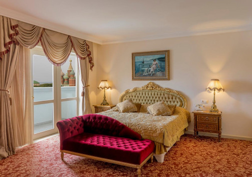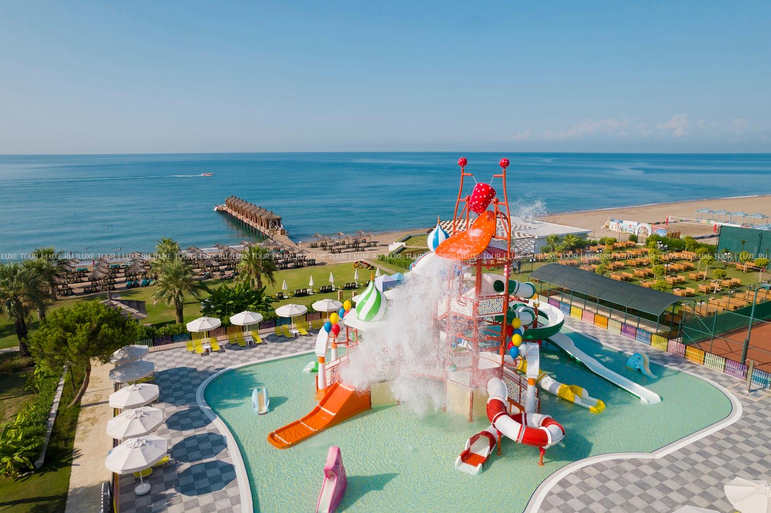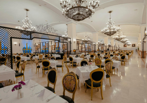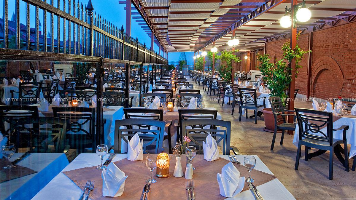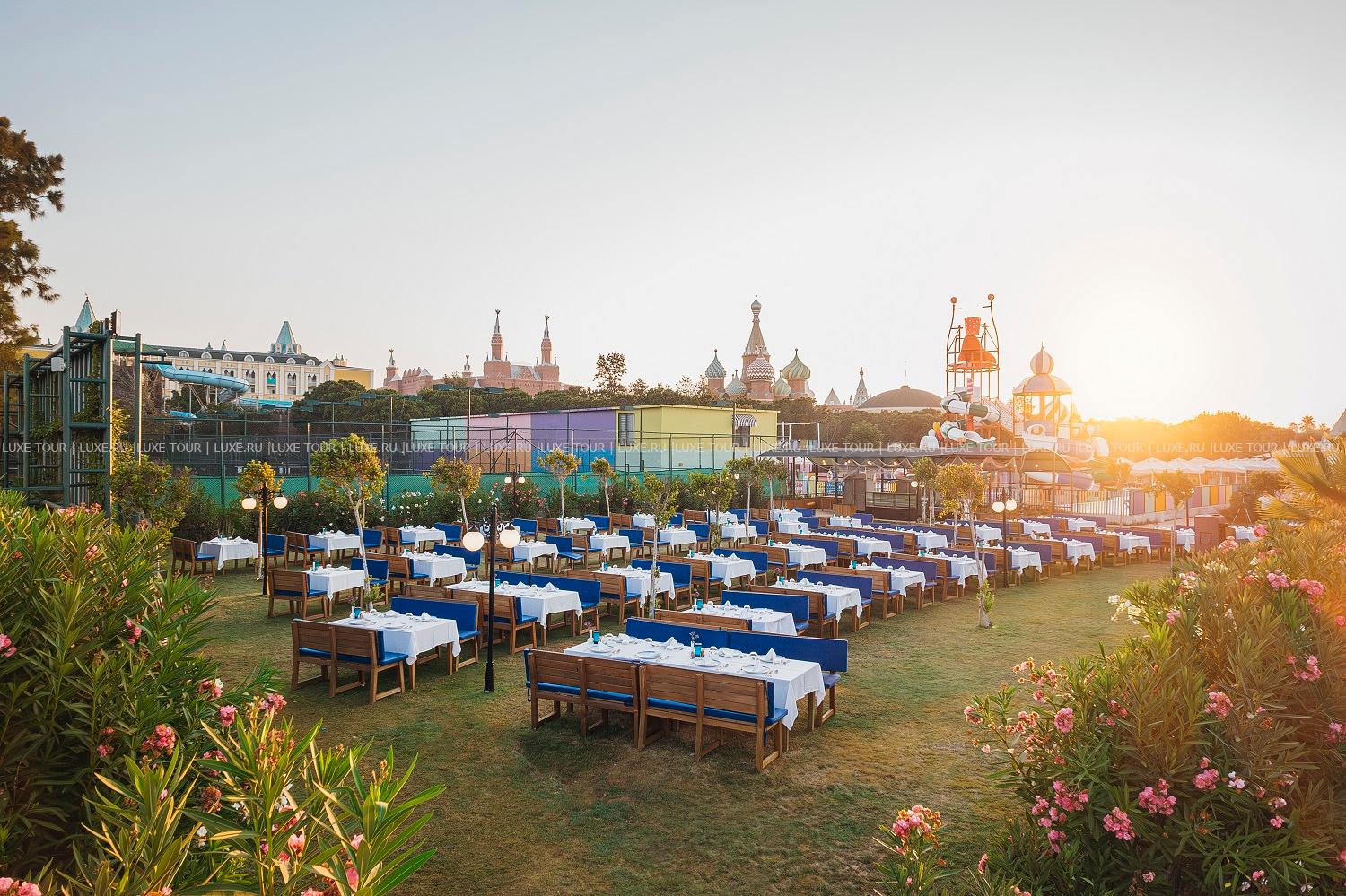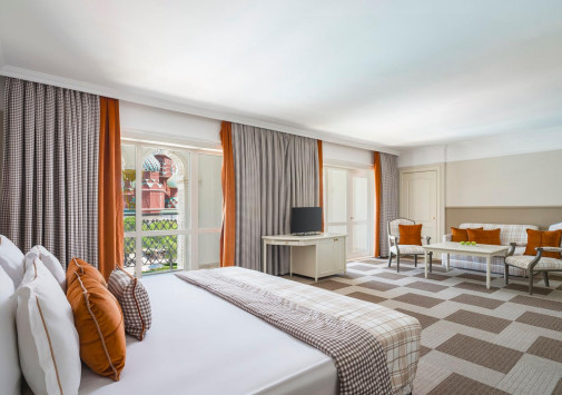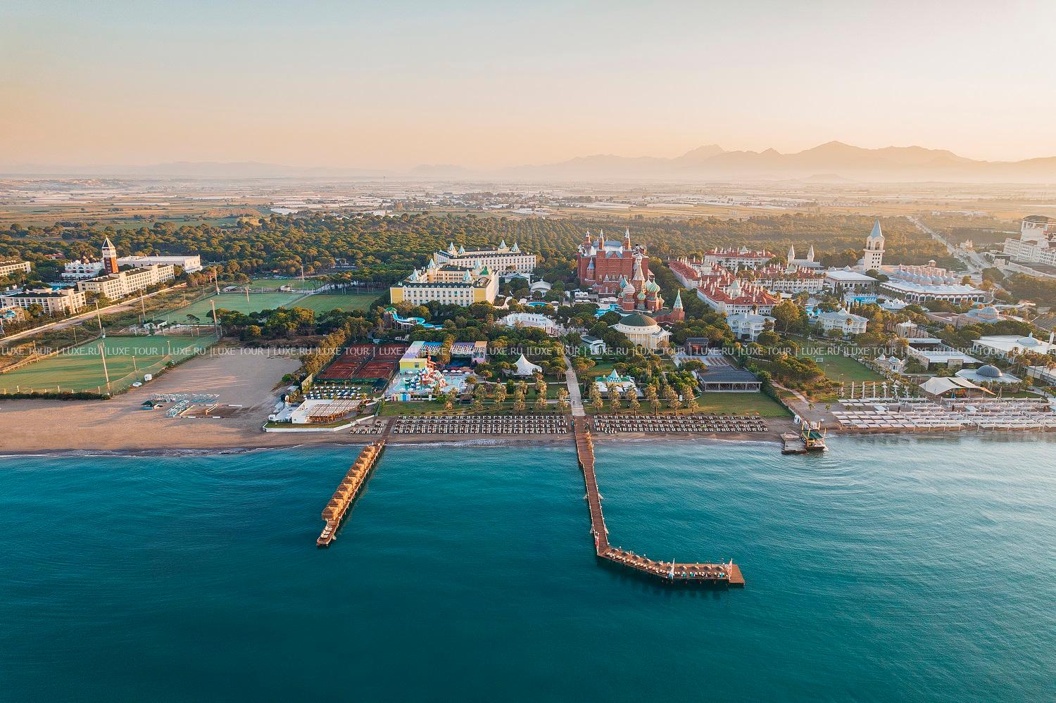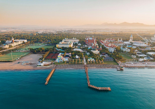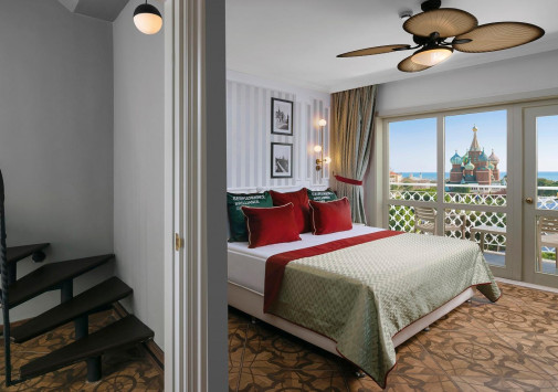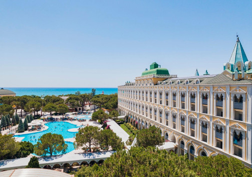 Kremlin Palace раскинулся у белоснежного пляжа и прозрачного Средиземного моря, на живописной зеленой территории площадью 75 000 м2. В названии отеля отражена его уникальная концепция: он полностью воссоздает облик Красной площади — от центрального входа, который выполнен в виде Воскресенских ворот, ведущих на площадь, до главного здания — прекрасной копии Исторического музея. Отель также впечатляет своей инфраструктурой и первоклассным сервисом: элегантные номера и сверкающие бассейны, многочисленные рестораны и бары, спа-центры клубы для детей и подростков, водный спорт и дайвинг, спорт и развлечения на любой вкус и возраст. Kremlin Palace — идеальный выбор для семейного отдыха у моря.