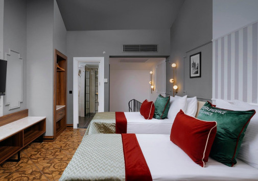 Фотографии представленных на сайте номеров дают общее представление о каждой категории номерного фонда гостиницы. Номера могут отличаться по метражу, цветовому решению, планировке, наличием/отсутствием балкона и т.п. Конкретный номер становится известен при заселении гостя в гостиницу.