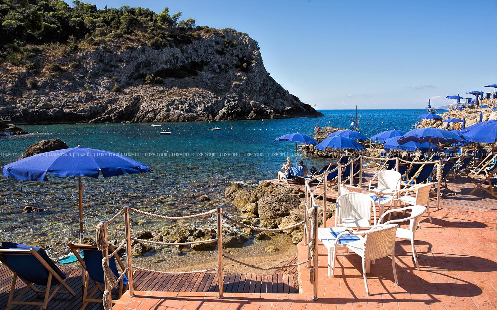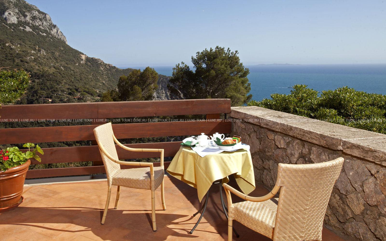 Torre di Cala Piccola, расположился в старинной испанской крепости XVII века, среди оливковых и олеандровых деревьев, на скале высотой 100 м, откуда открывается чудесный вид на прозрачное Тирренское море, острова Монтекристо и Джильо. В отеле — комфортабельные номера, открытый бассейн, пляж в живописной бухте, ресторан La Cambusa предлагает широкий выбор рыбных и мясных блюд, изысканных вин. В теплое время к услугам гостей — столики на открытом воздухе, в саду отеля, где можно любоваться панорамным видом на острова Тосканского архипелага. Современно оснащенный конференц-зал — удобное место для проведения деловых и торжественных мероприятий. Окруженный удивительной красоты природой, Torre di Cala Piccola предлагает многообразие услуг и современный комфорт для приятного отдыха.