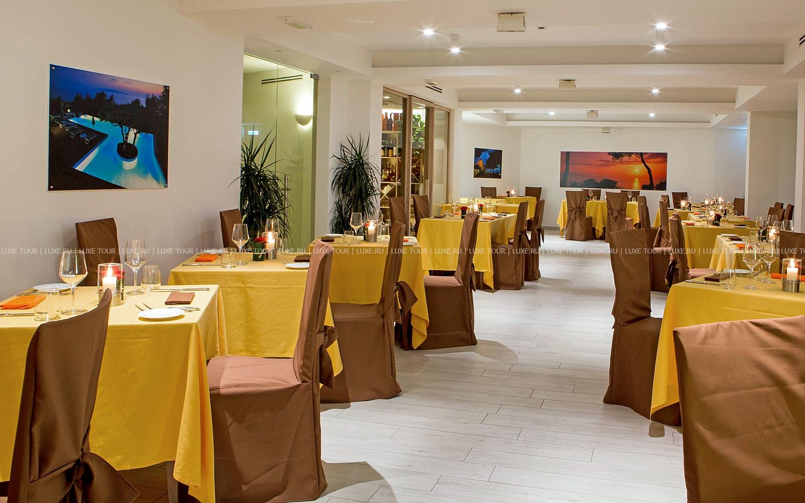 Ресторан La Cambusa предлагает широкий выбор рыбных и мясных блюд, изысканных вин. В теплое время к услугам гостей — столики на открытом воздухе, в саду отеля, откуда открывается панорамный вид на острова Монтекристо и Джильо. Сюда в течение дня подаются также напитки из бара.