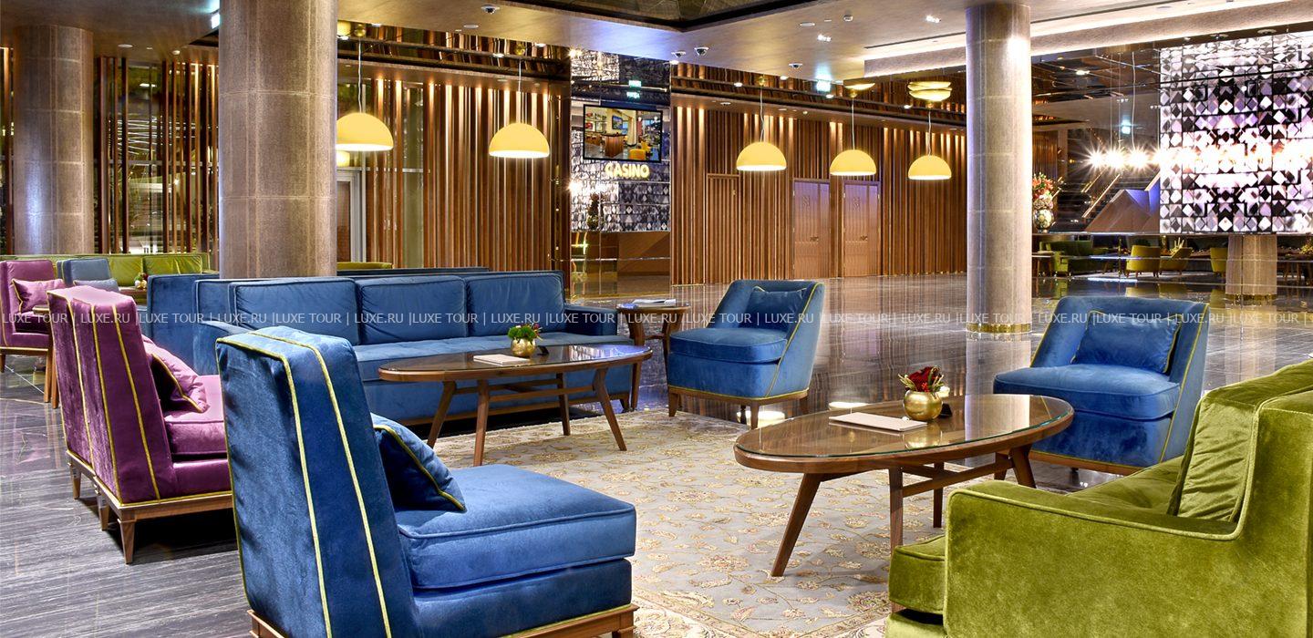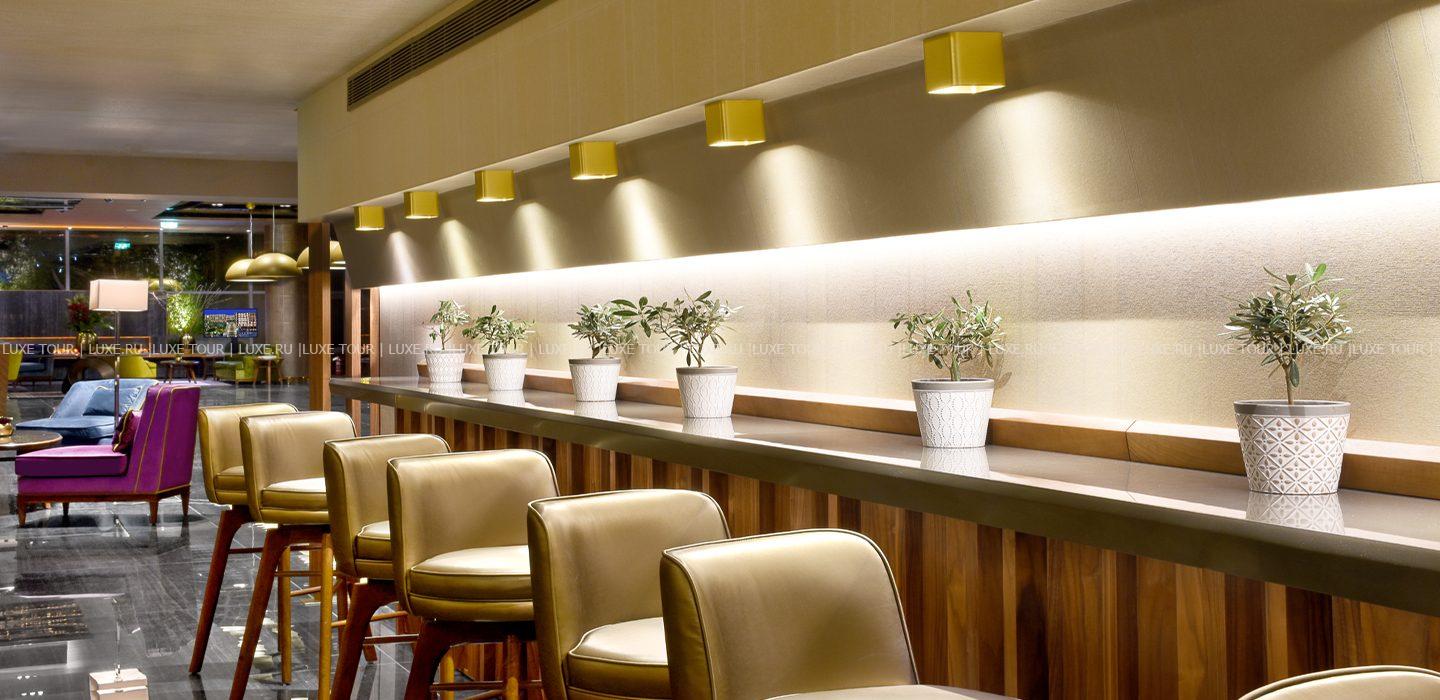 - Просторный лобби-бар Laurus прекрасно подходит для аперитива или чашечки утреннего кофе.