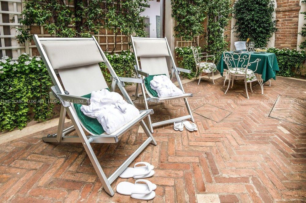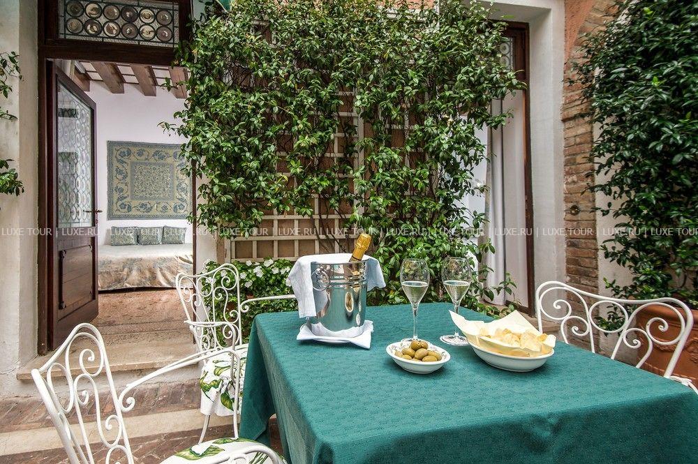 В отеле открыт зал для завтраков с террасой на открытом воздухе во внутреннем дворике; также к отелю примыкает трактир Giorgione с дегустацией вин, предлагающий разнообразие блюд венецианской кухни и различных напитков. Днем гостям бесплатно предлагается чай со всевозможными сладостями.