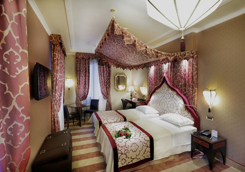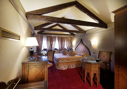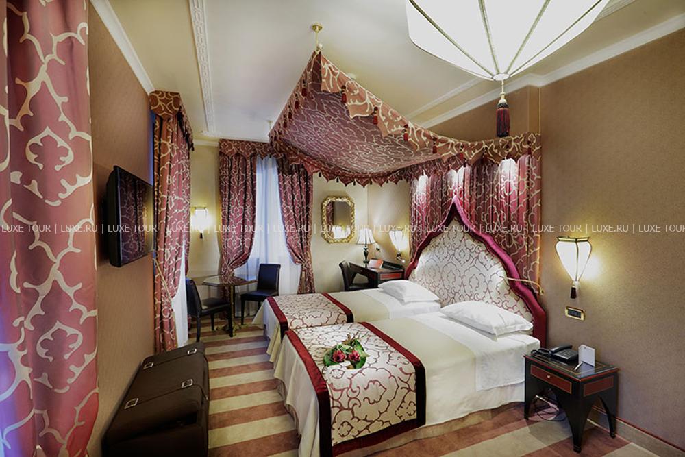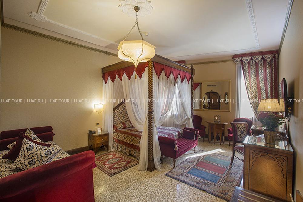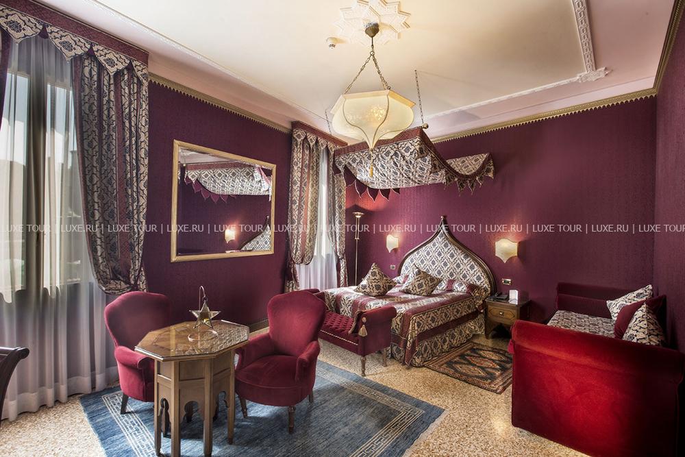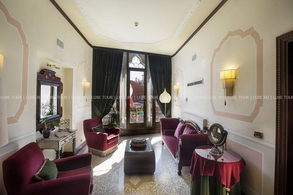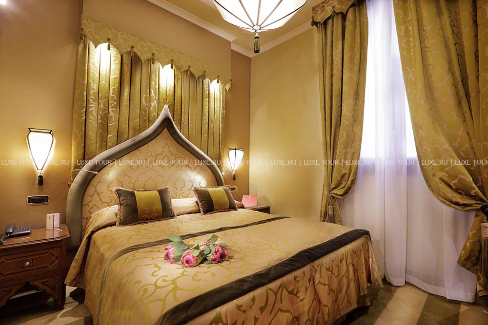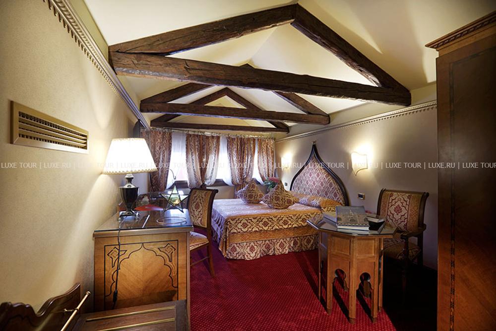Находясь в одном из самых тихих уголков Венеции, Ai Mori d'Oriente, открывшийся в 2003 году, сочетает удобное расположение — в стороне от шумных туристических маршрутов и одновременно близкое к основным достопримечательностям, старинным церквям, тратториям, ресторанам, барам города, — и изысканную архитектуру здания, фасадом выходящего на канал и выполненную в византийско-венецианском стиле с элегантным внутренним убранством. Интерьеры помещений и комфортабельных номеров отеля отражают историческое прошлое дворца, где несколько веков назад останавливались турецкие купцы, следуя через Венецию — главный порт Великого Шелкового Пути: восточные мотивы в обстановке, изысканная резьба и инкрустации, тяжелые драпировки, ковры и оригинальная мебель насыщенных тонов, стены, украшенные зеркалами в тяжелых рамах и многочисленными светильниками.