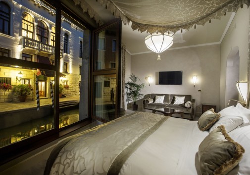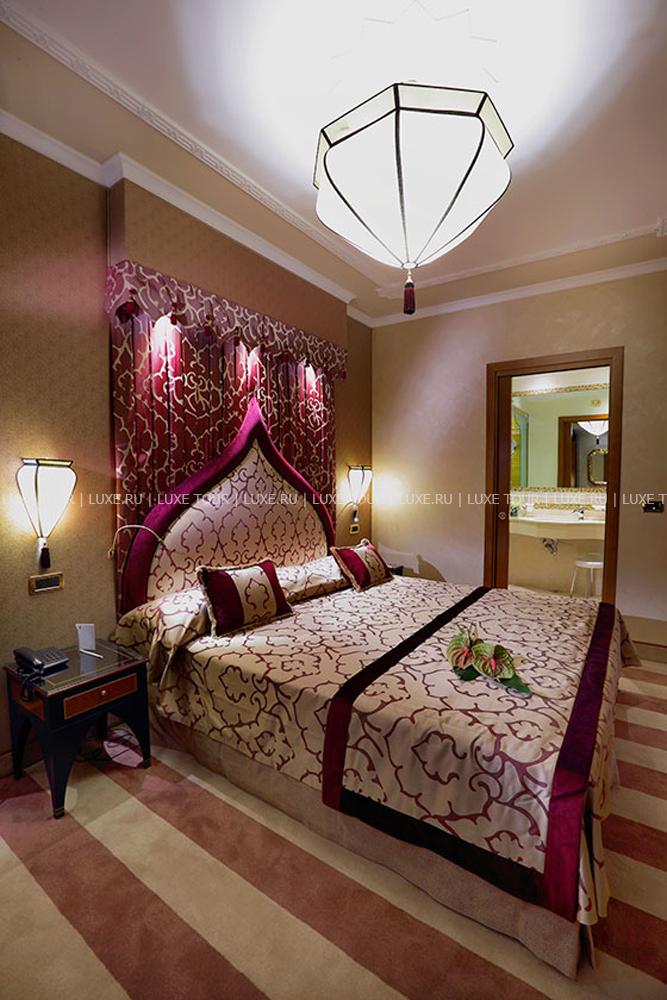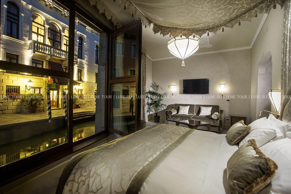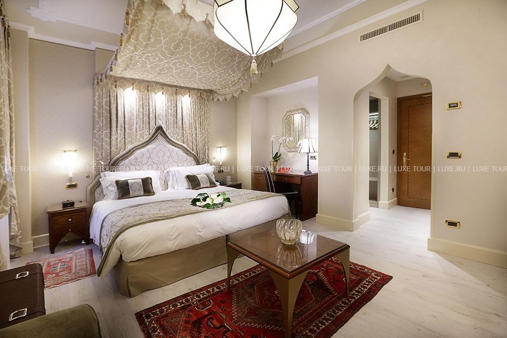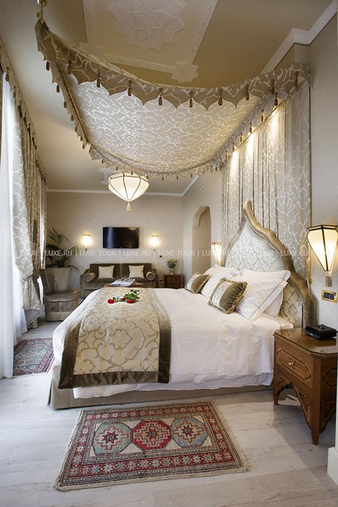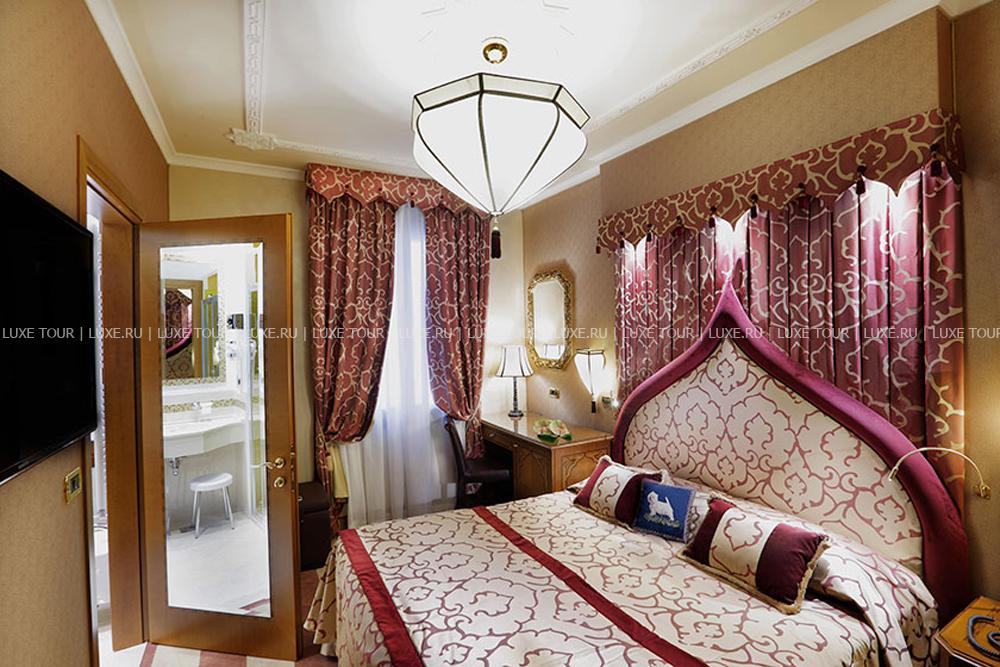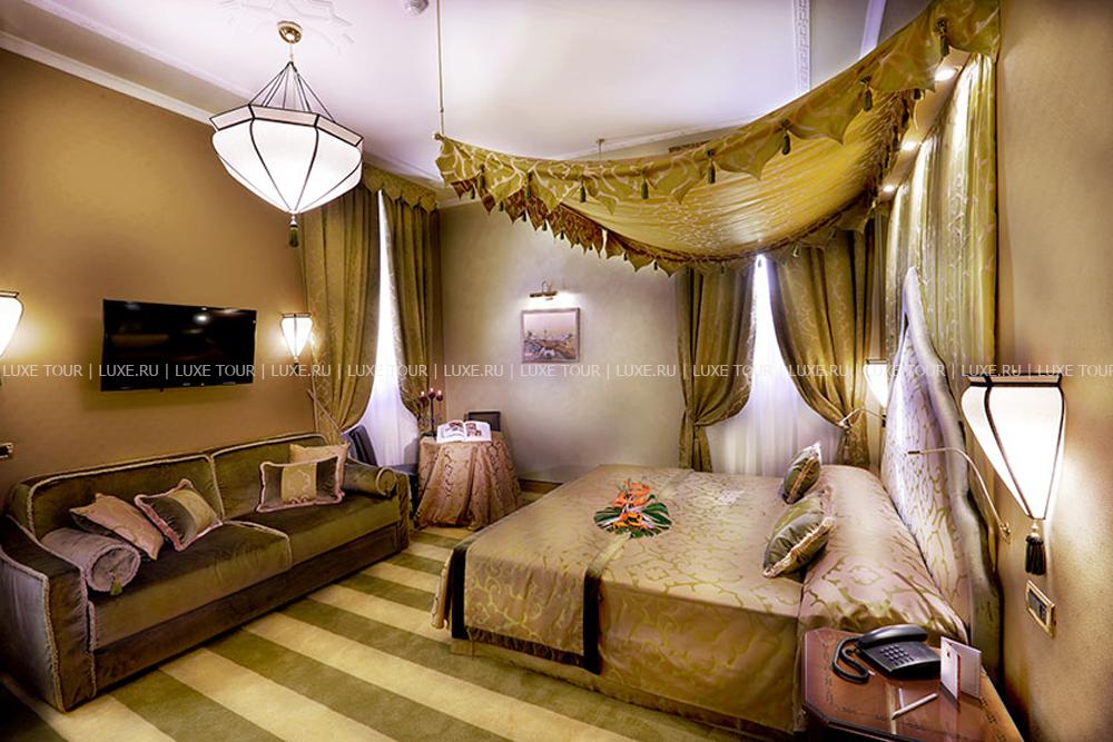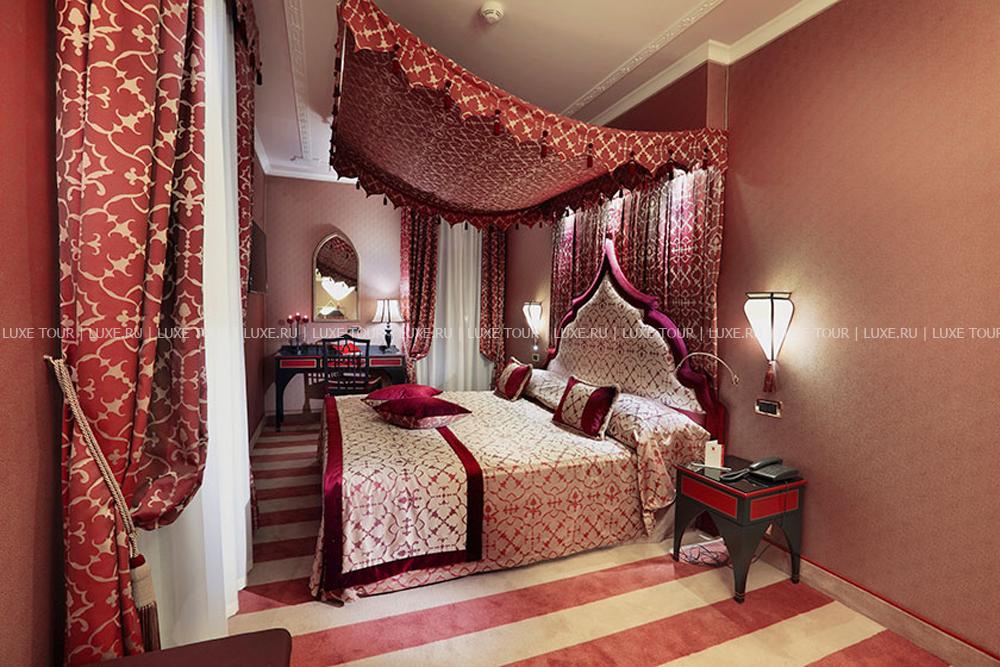 Находясь в одном из самых тихих уголков Венеции, Ai Mori d'Oriente, открывшийся в 2003 году, сочетает удобное расположение — в стороне от шумных туристических маршрутов и одновременно близкое к основным достопримечательностям, старинным церквям, тратториям, ресторанам, барам города, — и изысканную архитектуру здания, фасадом выходящего на канал и выполненную в византийско-венецианском стиле с элегантным внутренним убранством. Интерьеры помещений и комфортабельных номеров отеля отражают историческое прошлое дворца, где несколько веков назад останавливались турецкие купцы, следуя через Венецию — главный порт Великого Шелкового Пути: восточные мотивы в обстановке, изысканная резьба и инкрустации, тяжелые драпировки, ковры и оригинальная мебель насыщенных тонов, стены, украшенные зеркалами в тяжелых рамах и многочисленными светильниками.