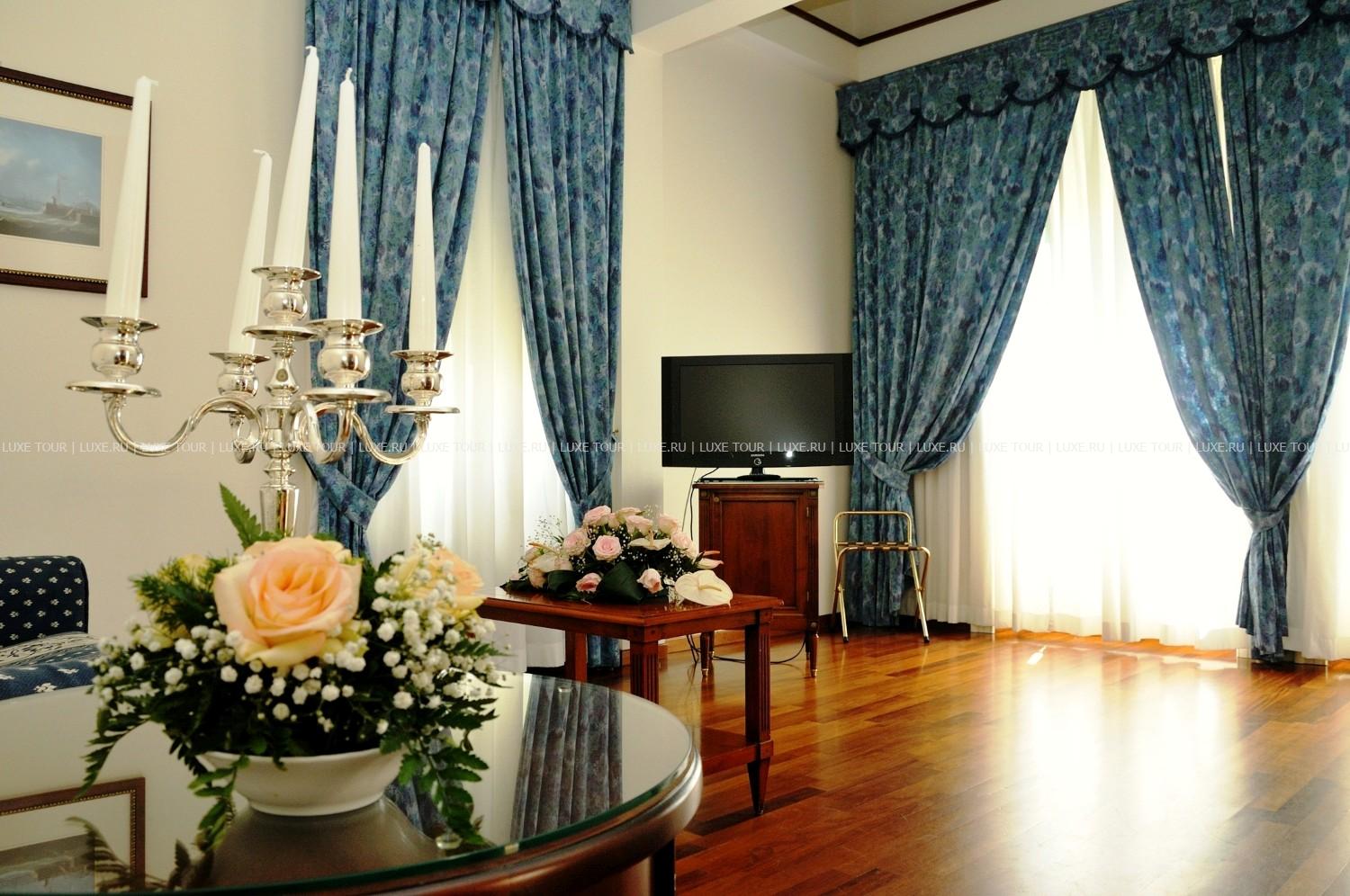Так же различаются по местоположению и интерьерам комфортабельные и изысканные номера отеля. Просторный элегантный ресторан отеля с расписными стенами, высокими арочными окнами, потолком, обшитым деревом, предлагает разнообразие блюд традиционной итальянской кухни и кухни местного региона; возле открытого бассейна олимпийских размеров располагается бар, где подаются различные напитки и легкие закуски, а вечерами играет живая музыка.