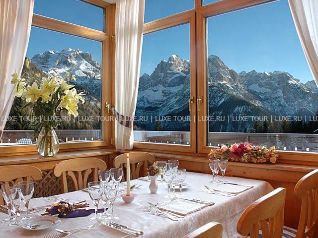 Уютный бар отеля с камином и просторной террасой с изумительным видом на Доломиты является прекрасным местом, где можно отдохнуть, попробовать различные коктейли, ликеры, легкие закуски, и послушать живую музыку.