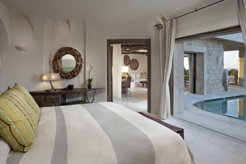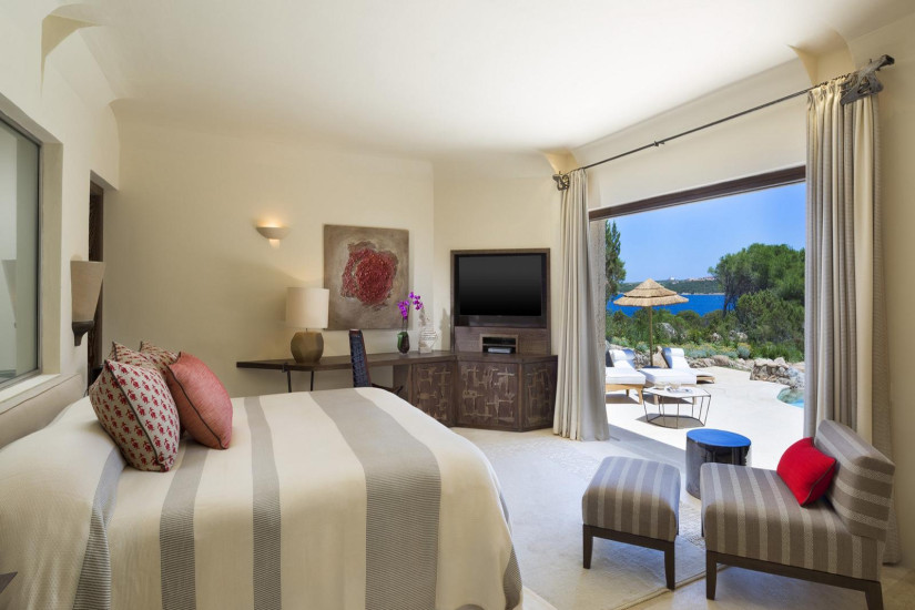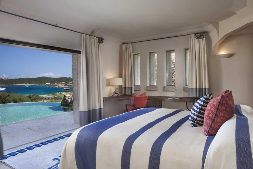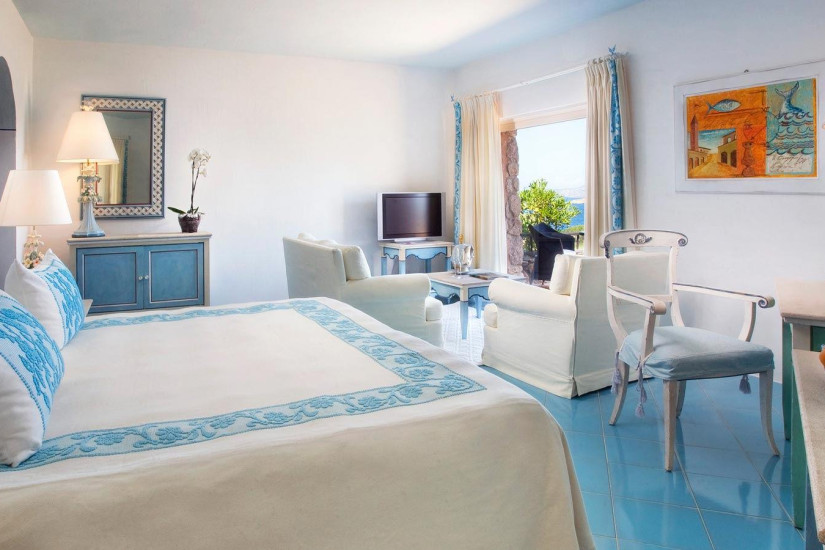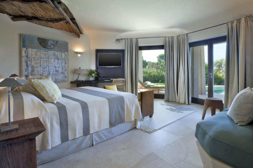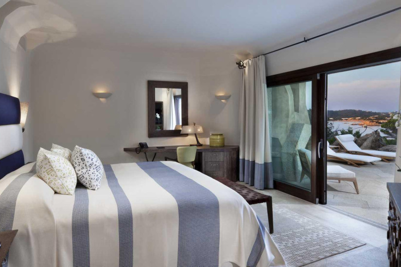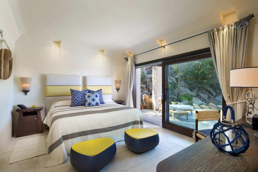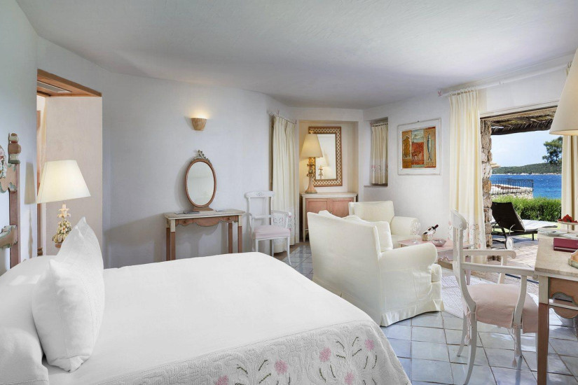 - Отель предлагает своим гостям 65 номеров различных категорий, Suite и Villa. Все комнаты обставлены в элегантном и комфортабельном стиле, с мебелью ручной работы и открывают потрясающий вид на сад или море. Повсюду доминирует влияние сардинского стиля: натуральное дерево, гранит и знаменитая местная керамика Сerasarda.