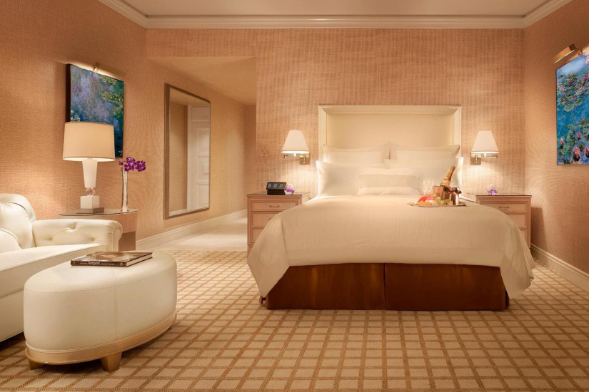 - 118 м2. Прекрасно оборудованная гостиная, рабочее место с письменным столом и две спальни, которые могут быть отделены от помещений общего пользования. Этот Люкс подходит как для развлечений, так и для приватного отдыха. В итальянской мраморной ванной комнате вы обнаружите двойные раковины, джакузи, отдельную стеклянную душевая кабина и гардероб. Спальня и гостиная разделены дверью. В гостиной есть бар. Гостям предложат ежедневный бесплатный завтрак на двоих, утренний кофе или чай и уборку номера два раза в день. Имеется высокоскоростной доступ в Интернет и прекрасный вид на бульвар Стрип или на поле для игры в гольф.