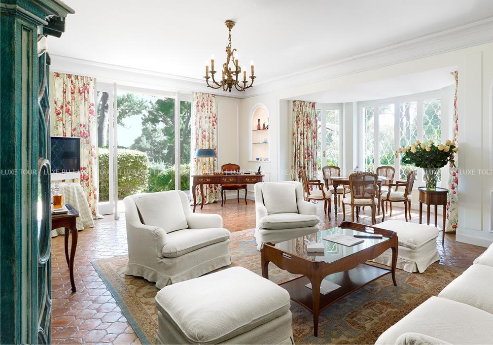 На самом берегу Средиземного моря, среди 9 гектаров изумительного парка, благоухающего сосновыми и цитрусовыми деревьями, расположены элегантные здания и виллы Hôtel du Cap Eden-Roc Франция. Отель, открытый в 1889 году на месте летней писательской резиденции с чудесным названием «Вилла солнца», быстро завоевал популярность среди мировых знаменитостей. Здесь отдыхали Бернард Шоу, Пабло Пикассо, Марк Шагал, Эйзенхауэр и многие другие именитый гости. Здесь проводятся самые престижные встречи Каннского фестиваля и другие культурные события. И это вполне понятно, ведь Hôtel du Cap Eden-Roc Франция – это гарантия эксклюзивной марки и высочайшего уровня сервиса: от роскошных номеров, уединенных фешенебельных вилл и великолепного бассейна, сливающегося с морским горизонтом, до первоклассного СПА центра, изысканных ресторанов высокой кухни, стильных баров и других услуг класса «люкс».