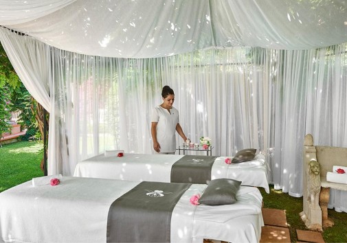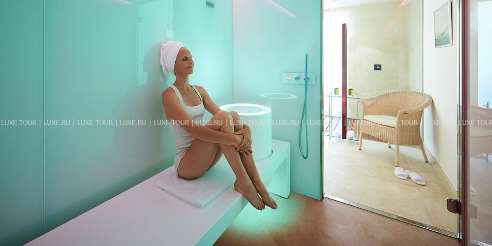 В отеле открыт прекрасный СПА центр с сауной, хамамом, массажным-душем, фитнес-залом, салоном красоты и 4 процедурными кабинетами, где предложен большой выбор массажей и процедур по уходу за телом и лицом с использованием элитной косметики Sisley. Массаж возможно также проводить в беседке сада или спа-кабинке, расположенной на берегу Средиземного моря.