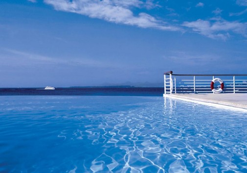 Отель расположен у скалистого пляжа, на котором находятся оборудованные для пляжного отдыха кабинки (cabanas).