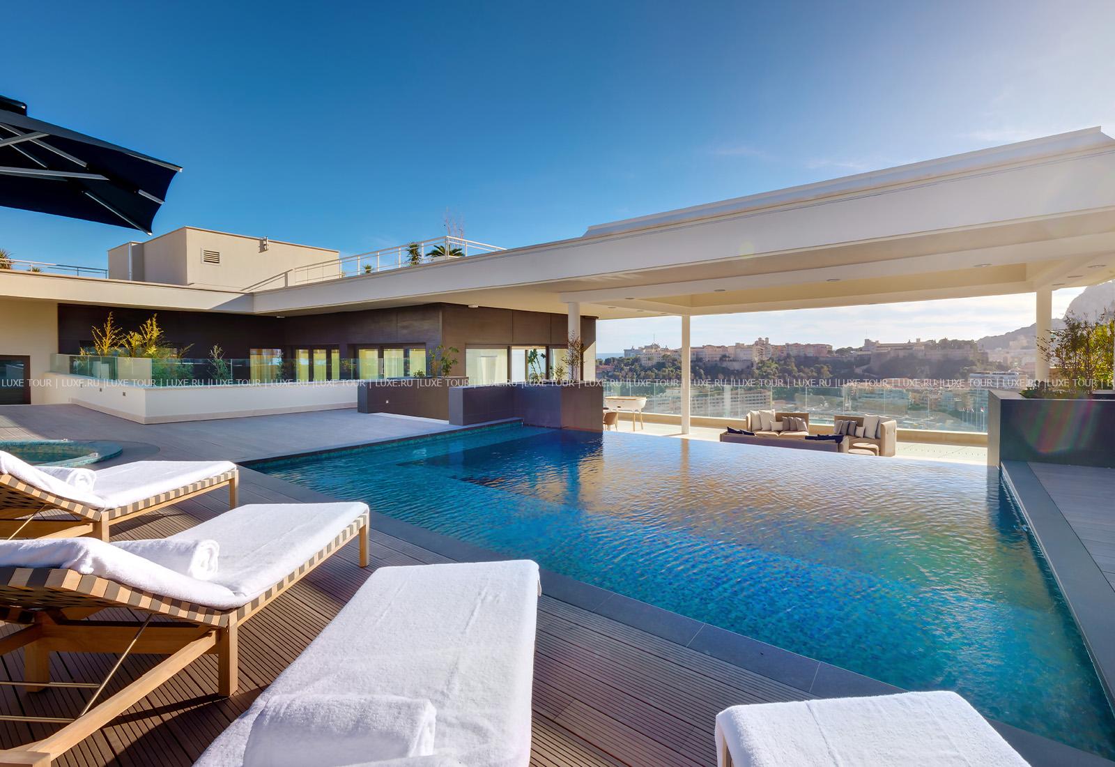 Гостям предоставляется бесплатный доступ в примыкающий к отелю великолепный комплекс Thermes Marins Monte-Carlo, где на площади 6600 м2 есть всё для релаксации и оздоровления – от подогреваемого бассейна с морской водой, гидромассажной ванны, саун и хаммама до Spa-салона, фитнес-центра и ресторана с видом на море.