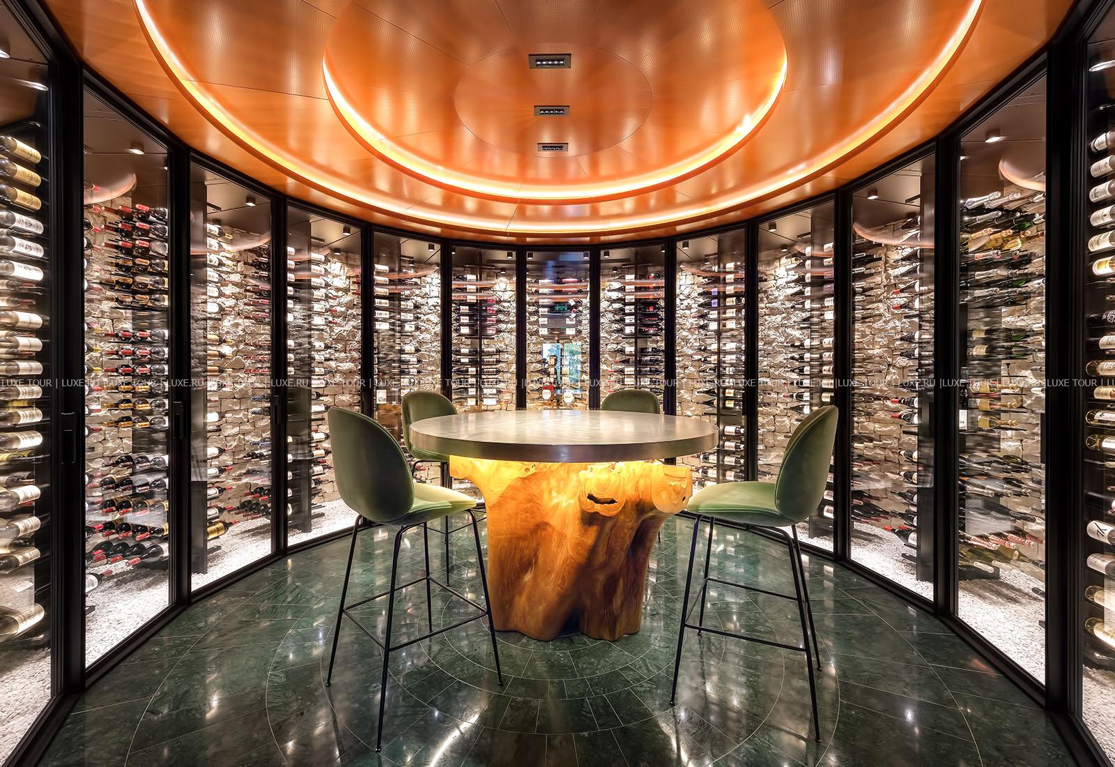 - Предлагаются дегустации в великолепных винных погребах отеля, где на площади 1500 м2 хранится 400 000 бутылок лучших вин из Шампани, Прованса, Бургундии и Бордо.