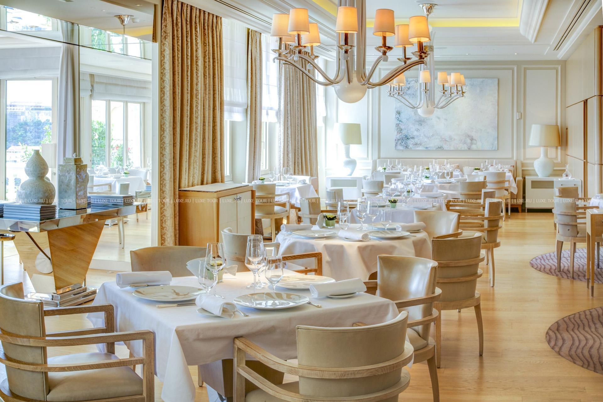 - Шикарный гастрономический ресторан Vistamar, интерьеры которого созданы по проекту знаменитого дизайнера Пьера-Ива Рошона, удостоен звезды Мишлен и предлагает кулинарные изыски от известного шеф-повара Жоэля Гаро и богатую карту вин. Летом столики сервируют на открытой террасе с потрясающим видом на море и порт.