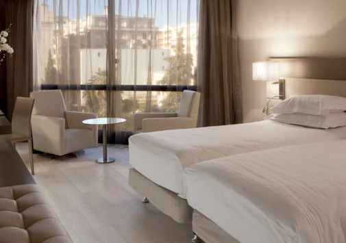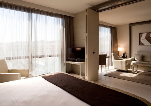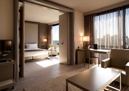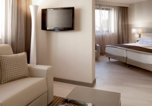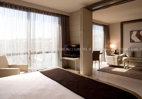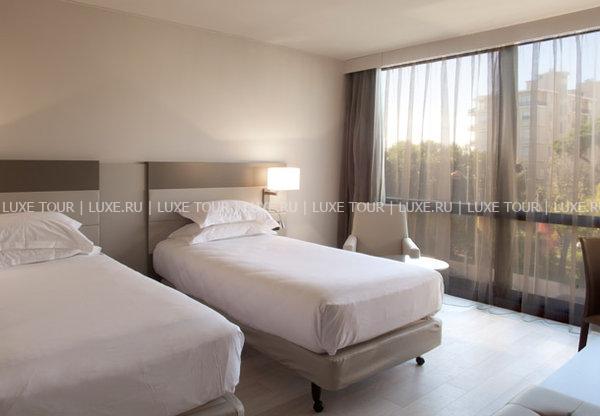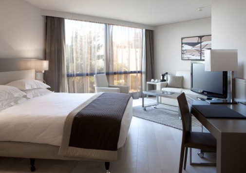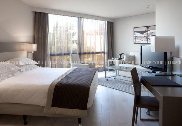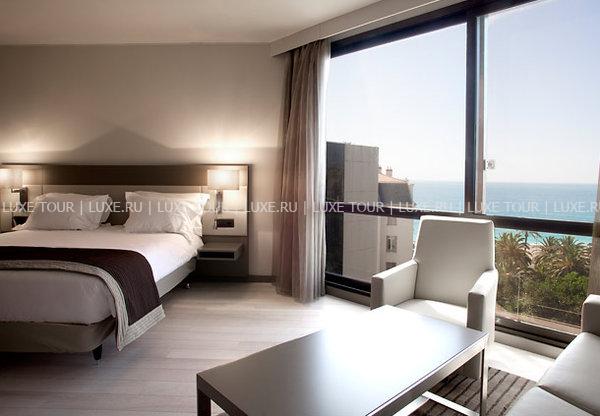 Многоэтажный комплекс был возведен в 1987 году в соответствии с последними веяниями современной архитектуры: проработанные сочетания дымчатого стекла и белого гранита с удивляющей элегантностью грациозных форм идеально гармонируют с обольстительным пейзажем Лазурного берега: глубокой синевой неба, раскидистыми пальмами, золотыми пляжами и расстилающейся бирюзой Средиземного моря. Прекрасный ансамбль по бокам здания дополняют две большие статуи Венеры работы местного скульптора Саши Сосно. Они весьма удачно выполняют задачу, предназначенную им автором – радушно встретить гостей и приоткрыть им удивительные тайны, скрывающиеся за стеклянным фасадом. Футуристический экстерьер причудливым образом здесь смягчается и приобретает новое прочтение благодаря оригинальному контрасту с выдержанными в стиле Ар Деко интерьерами номеров и холлов. Драпировки и обивка мебели из тканей кофейных, кремовых, желтых и синих тонов, дорогие ковры, прекрасные эстампы, изысканные светильники и люстры сообщают номерам атмосферу, заложенную гармоничной философской концепцией гостиницы: атмосферу, связывающую в единое целое изысканную роскошь, комфорт и функциональность, радушие и отдохновение и, конечно же, безупречный уровень обслуживания. Все это делает этот отель идеальным местом как для бизнесменов, так и для любителей фешенебельного отдыха.