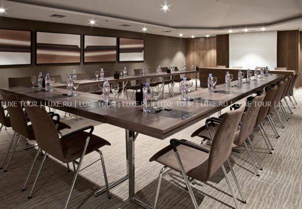 Для проведения торжественных мероприятий и деловых встреч отель располагает 3 конференц-залами площадью 80-120 м2, где можно разместить до 100 гостей.