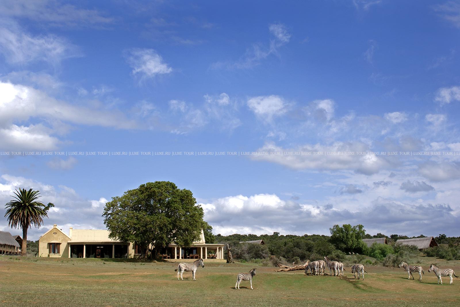 Лодж расположен в центре национального парка Эддо Элефант, в 45 минутах (70 км) от аэропорта Порт-Элизабет. Главное здание построено в XIX веке в колониальном стиле и оформлено со сдержанной роскошью и вниманием к деталям, что характерно для всех владений Hunter Hotel Group. В настоящее время здание полностью обновлено и реконструировано. Гости лоджа размещаются в шатрах-тентах. Это первый лодж, открытый на территории национального парка, обладающего крупнейшей на планете популяцией слонов. Здесь есть уютный ресторан под открытым небом «бома», где подают традиционные блюда африканской кухни для гурманов, открытый плавательный бассейн среди скал. Организуются сафари – по земле и по воздуху.