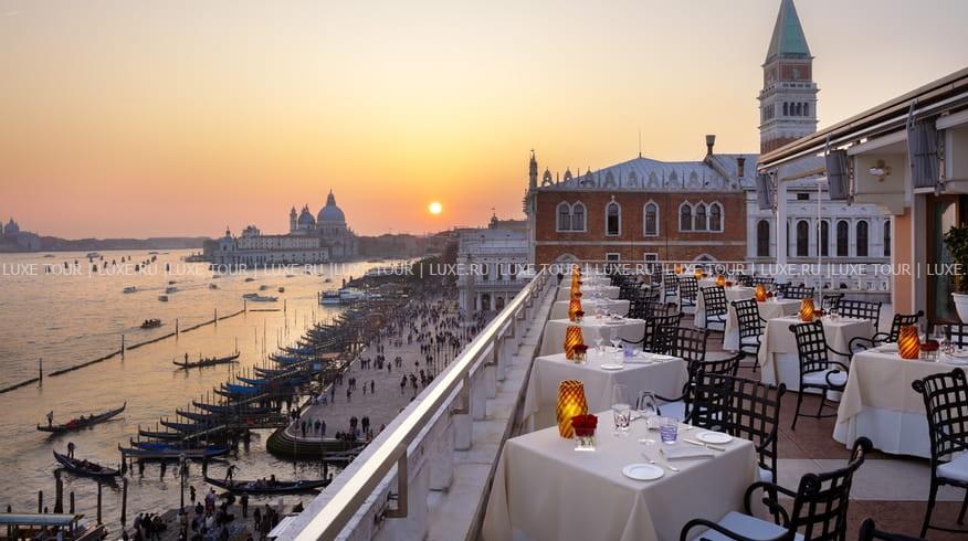 • В хорошую погоду гости могут насладиться коктейлями и легкими закусками на открытом воздухе в баре Terrazza Danieli, расположенном на крыше отеля с захватывающим видом на Венецианскую лагуну.