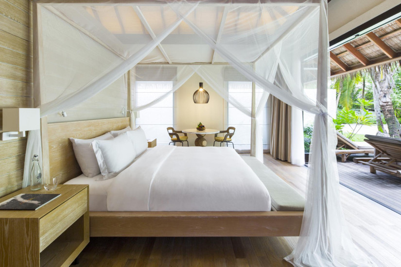 - 72 м2. Состоит из спальни с зоной отдыха, ванной комнаты с ванной и душем, террасы с зоной отдыха и обеденной зоной. Номера расположены в центральной части острова, в тени тропической зелени, рядом с основными зданиями курорта. Возможно объединение номеров.
