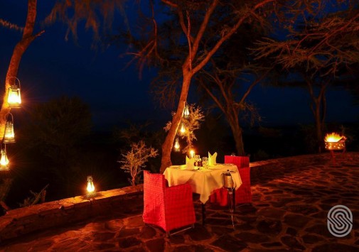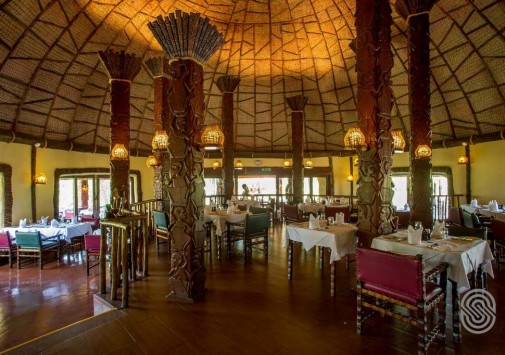 Двухэтажный ресторан, стилизованный в этническом стиле, где подают блюда европейской и африканской кухни, барбекю. Блюда готовятся на открытом огне или в каменной жаровне. В баре лоджа предлагается широкий выбор пива и вин.