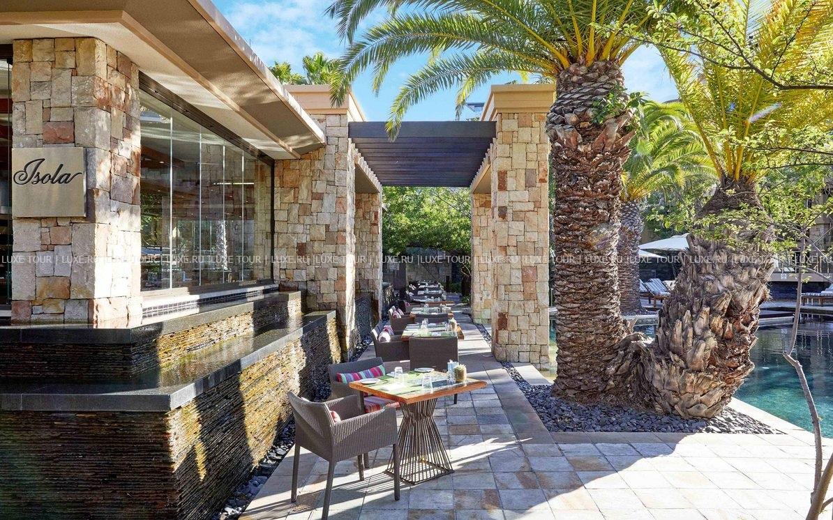 • Ресторан Isola, расположенный на террасе у бассейна-лагуны, предлагает блюда из морепродуктов, легкие закуски, свежеиспеченные лепешки и освежающие коктейли.