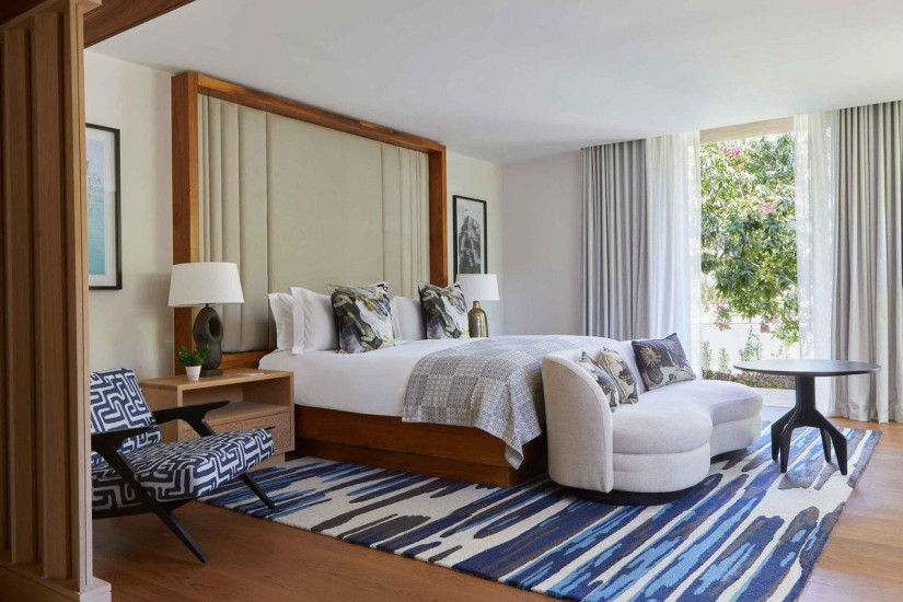 - 181 м2. Состоит из спальни с кроватью king-size, гостиной с камином, обеденной зоны, кухни, гардеробной, ванной комнаты с ванной и душем, гостевой туалетной комнаты, в некоторых номерах балкон или терраса с зоной отдыха. обеденной зоной и видом на бассейн-лагуну. Номера расположены в здании Island на острове. Максимальное размещение – 3 человека.