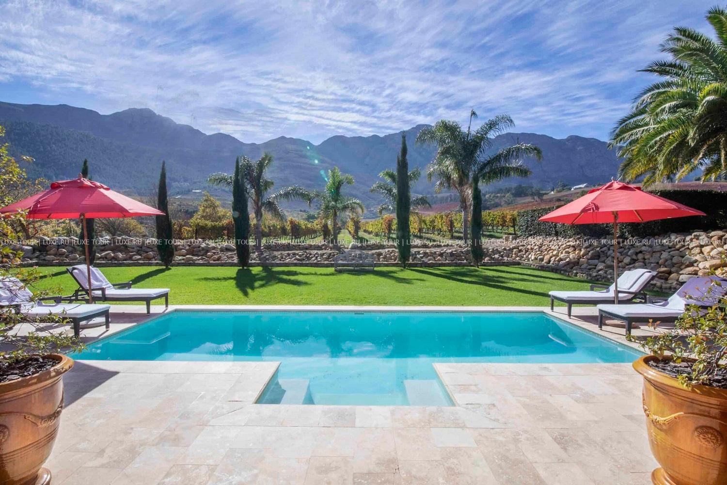 В окружении живописных гор и изумрудных виноградников долины Франшху, на 12 гектарах частного поместья с цветущими садами, зеркальным прудом и лазурными бассейнами раскинулся La Residence. Небольшой отель впечатляет великолепными интерьерами, украшенными коллекцией антикварных произведений искусства со всего света, каждый из роскошных номеров оформлен в индивидуальном стиле и располагает террасой с персональным бассейном и видом на долину, превосходная кухня и изысканные вина рассчитаны на искушенных гурманов, а разнообразие современных услуг – на ценителей высококлассного сервиса. La Residence – скрытая жемчужина среди винодельческих угодий Кейптауна.