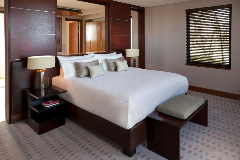 - 58 м2. Состоит из спальни с кроватю king-size или двумя кроватями twin, гостиной зоны с письменным столом и камином, гардеробной, ванной комнаты с ванной, душевой кабиной и двумя раковинами, балкона или патио с видом на океан, лагуну Найзна или поле для гольфа.