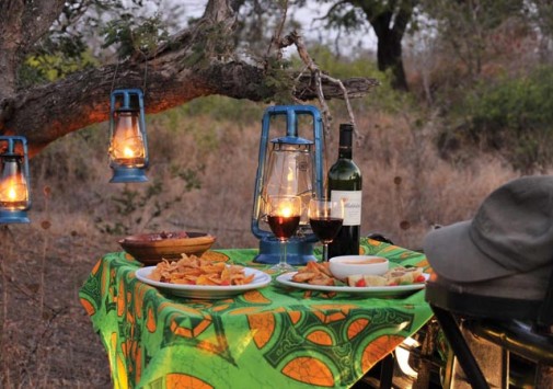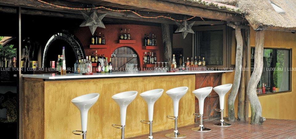 Завтраки, обеды и ужины подают под открытым небом или в ресторане, расположенном в главном бунгало отеля. Здесь предлагаются лучшие блюда южноафриканской кухни, приготовленные из самых качественных ингредиентов. Ресторан украшен экзотическим аквариумом. Также открыты винный погреб и бар, отделанный яркой мозаикой.