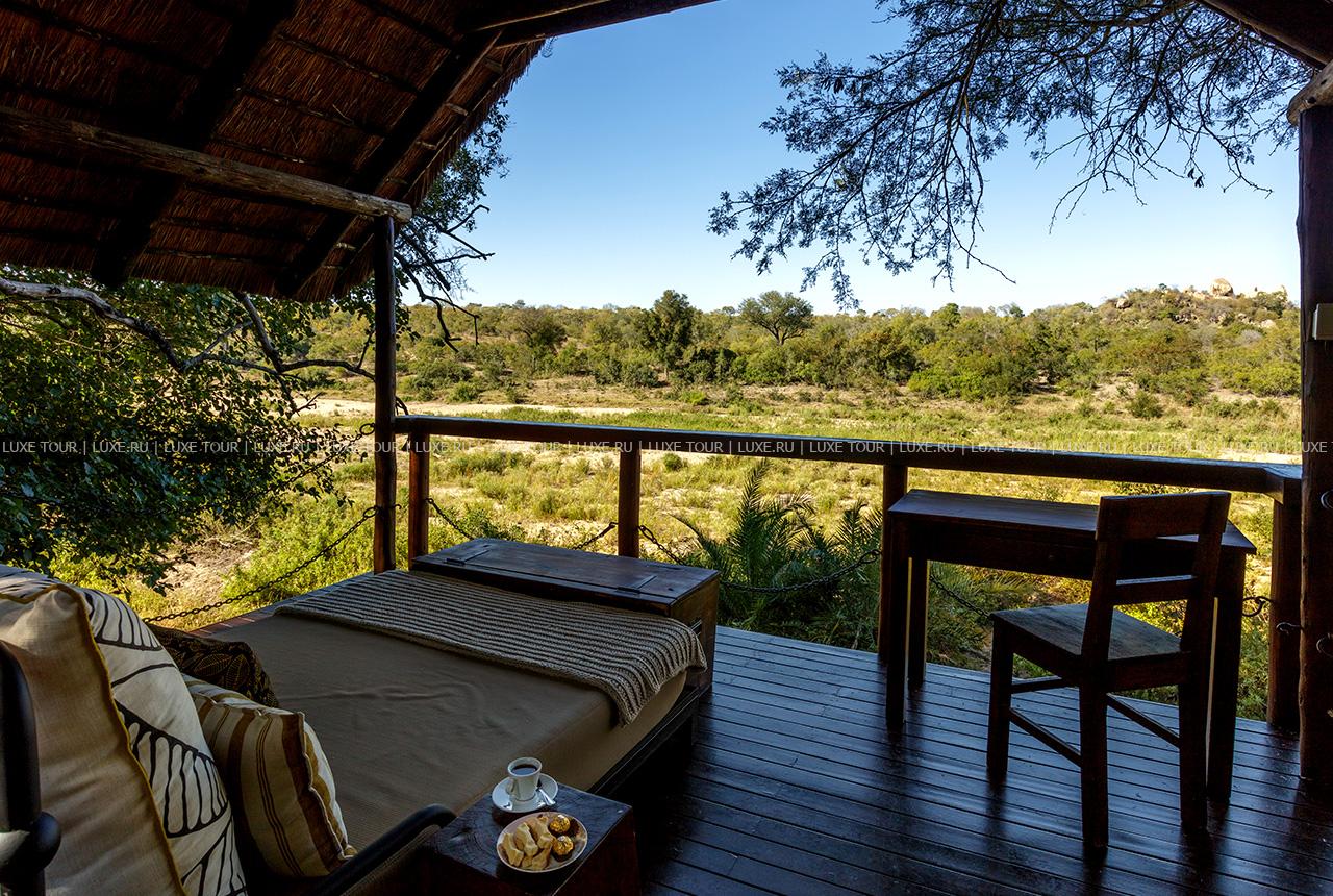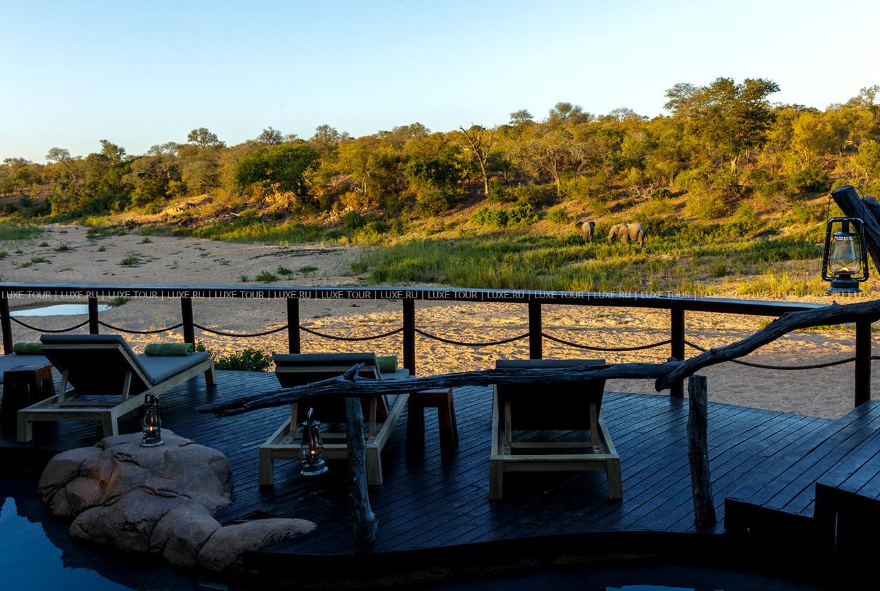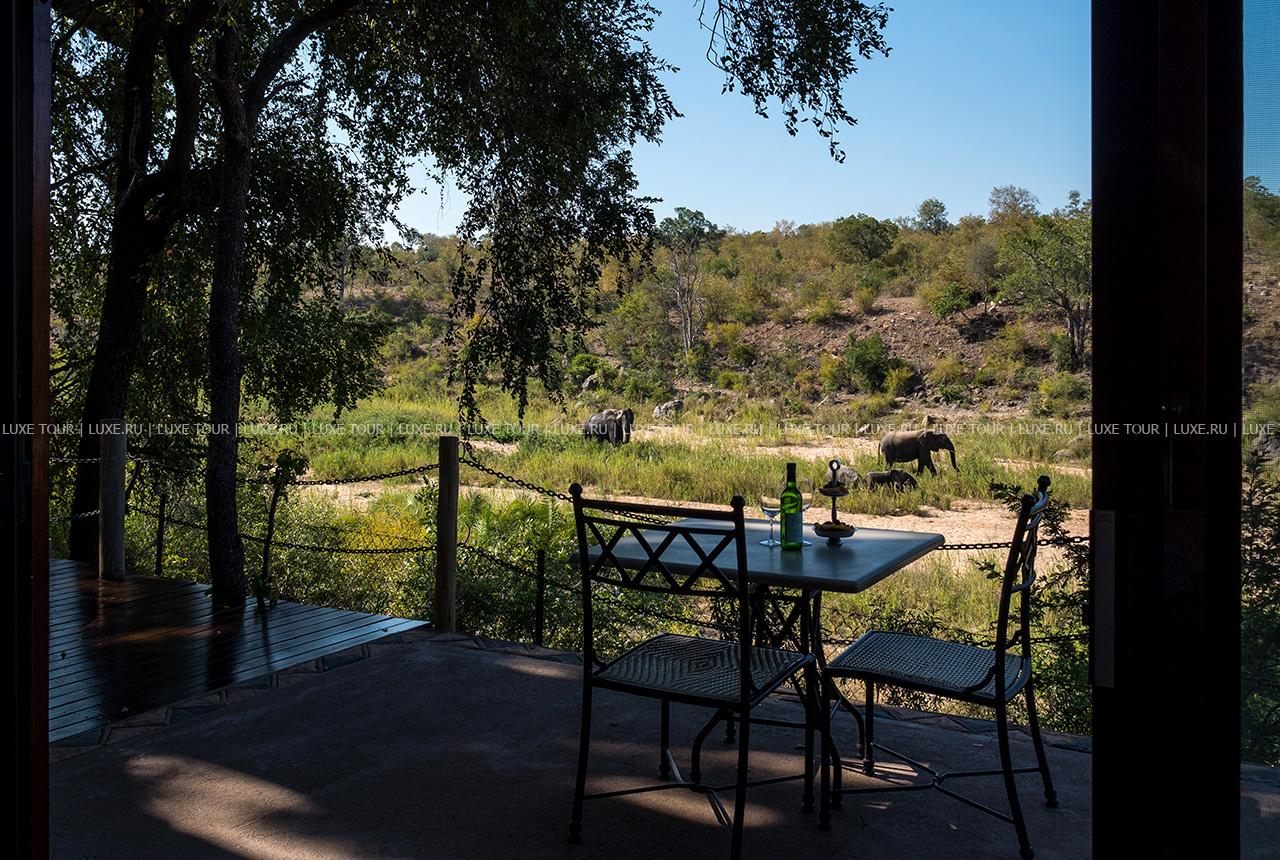 Отель расположен в провинции Мпумаланга, на северо-востоке страны, в южной части национального парка Kruger National Park, в месте слияния рек Mitomeni и Biyamiti, в 458 км от Йоханнесбурга. Романтичная атмосфера прошлых эпох сочетается здесь с изысканной роскошью убранства номеров. В оформлении бунгало использованы традиционные мотивы народностей шангаан и свази. В отеле открыт экзотический африканский ресторан, работает SPA-центр, предлагающий уникальные терапевтические процедуры по физическому и душевному оздоровлению. В окрестном парке водятся все представители африканской «большой пятерки»: львы, слоны, буйволы, носороги и леопарды. В отеле организуются сафари в открытых джипах под руководством опытного гида, пешие сафари, экскурсии для наблюдения за птицами и исторические экскурсии, предлагаются специальные программы для молодоженов.