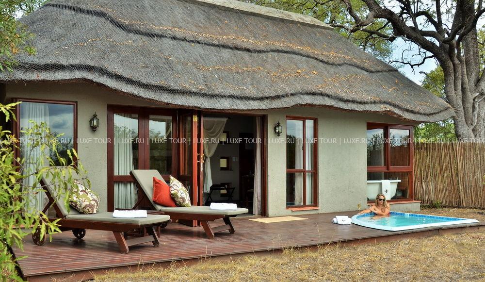 Большой открытый бассейн, собственные бассейны в номерах. Сафари на джипах, экскурсии в буш, наблюдение за птицами.
