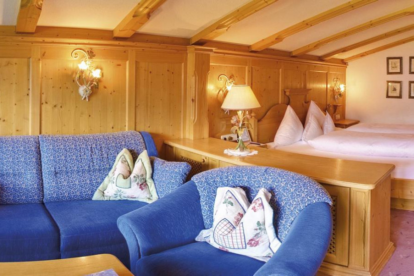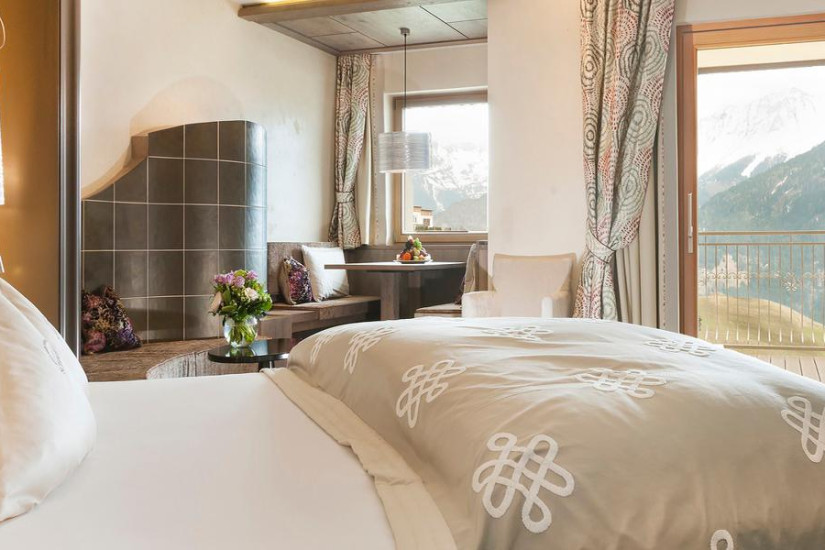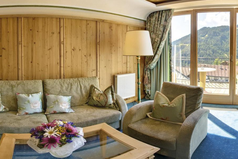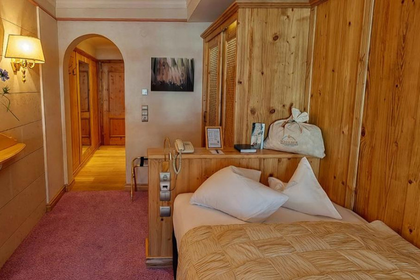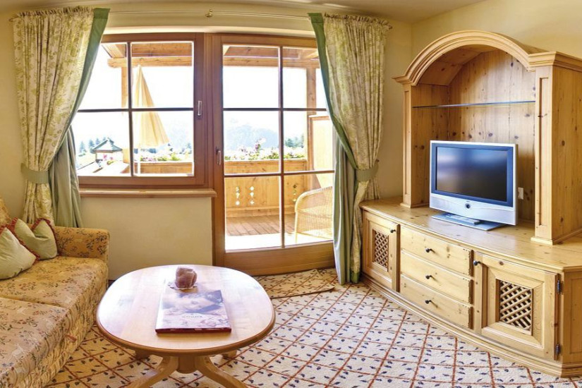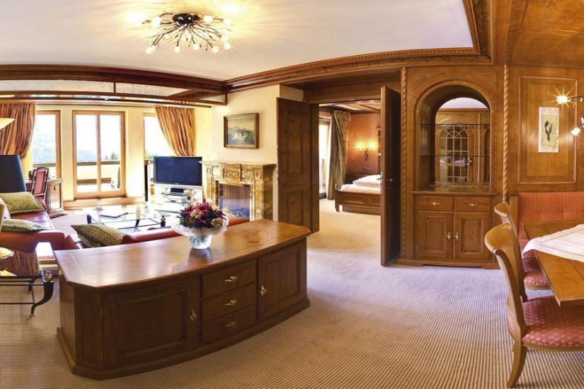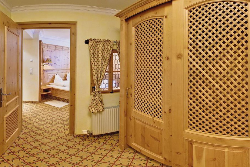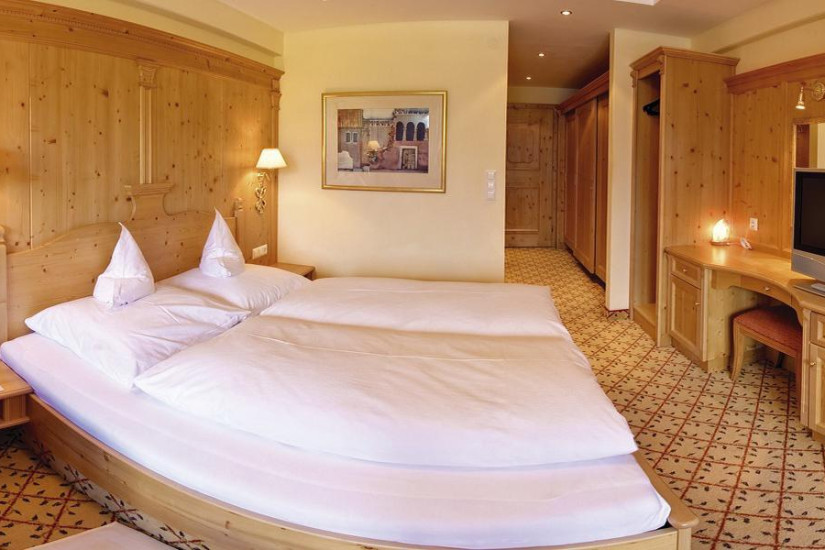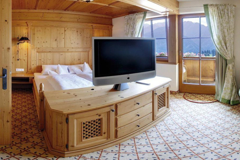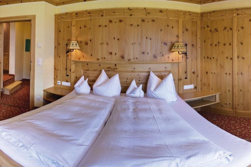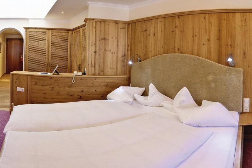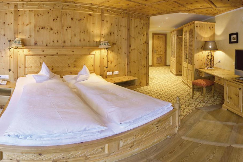 - Отель располагает комфортабельными номерами различных категорий, включая Double Room, Junior Suite, Suite, Apartment. В номерах — элегантные интерьеры в современном стиле с альпийским мотивами, с отделкой из дерева, удобной мебелью, ковровым покрытием на полах.