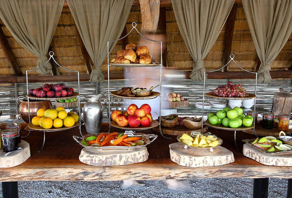Подают блюда африканской кухни. Завтраки и ланчи сервируют на большой деревянной террасе с видом на озеро.