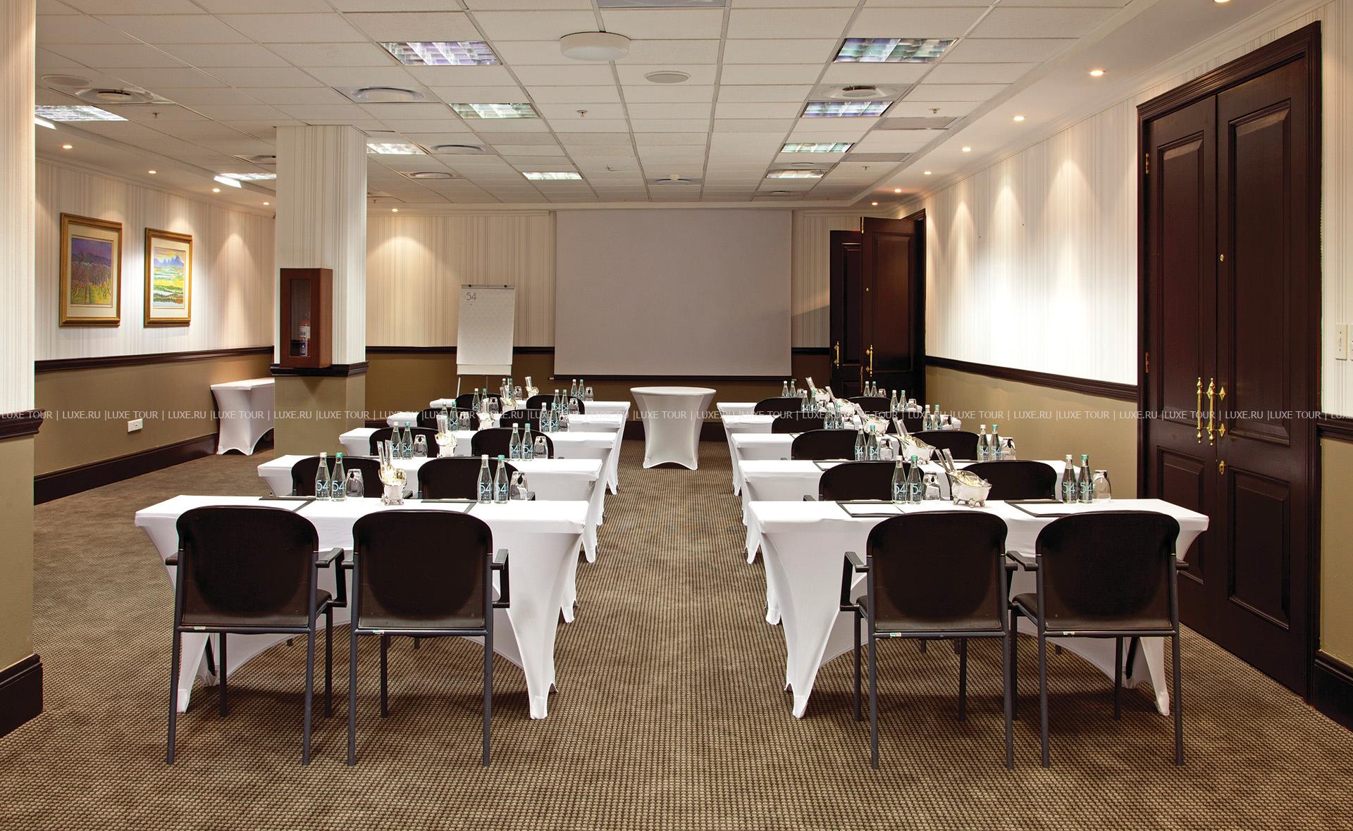 Для гостей – 3 конференц-зала (116.5 м2, 28.5 м2 и 42.8 м2) вместимостью до 120 гостей, комната для переговоров (36.6 м2) вместимостью до 20 гостей, бизнес-центр, автомобильная парковка, трансфер, услуги консьержа, услуги прачечной и химчистки.