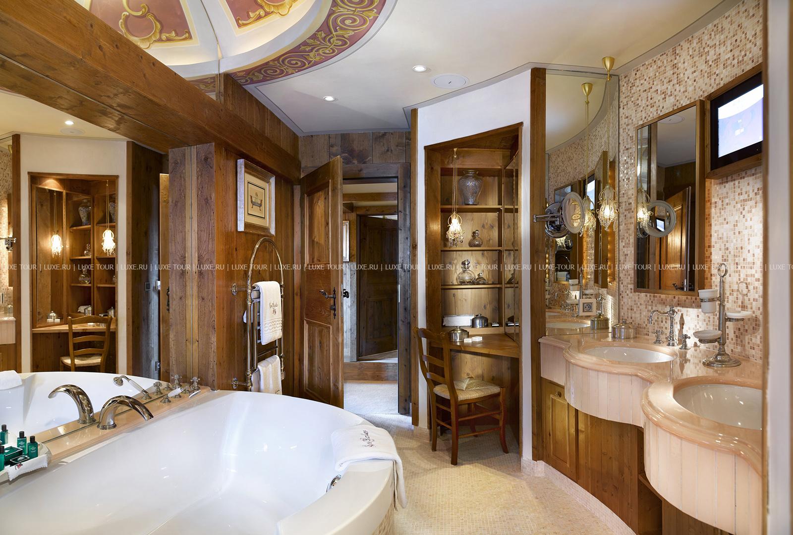 В тихом уголке Куршевеля, среди пушистых сосен, величественных горных склонов и заснеженных лыжных трасс расположен Les Airelles – очаровательный замок в австро-венгерском стиле. Внутреннее убранство отеля, скрывающееся за расписным фасадом с изящными балкончиками и башенками, удивительным образом сочетает домашний уют и роскошный интерьер: отделка из ценных пород дерева и великолепного текстиля, филигранная резьба, изумительные фрески и витражи, антикварная мебель, старинные полотна и мягкие ковры, мерцание хрустальных люстр и потрескивающий огонь в каминах. Изысканная атмосфера царит здесь повсюду: в элегантных номерах с чарующим видом на альпийские пейзажи и в ресторанах, впечатляющих гастрономическим разнообразием, в стильном пиано-баре и в первоклассном Spa-центре, предлагающем эксклюзивные процедуры. Les Airelles приглашает гостей в зимнюю сказку легендарного Куршевеля.