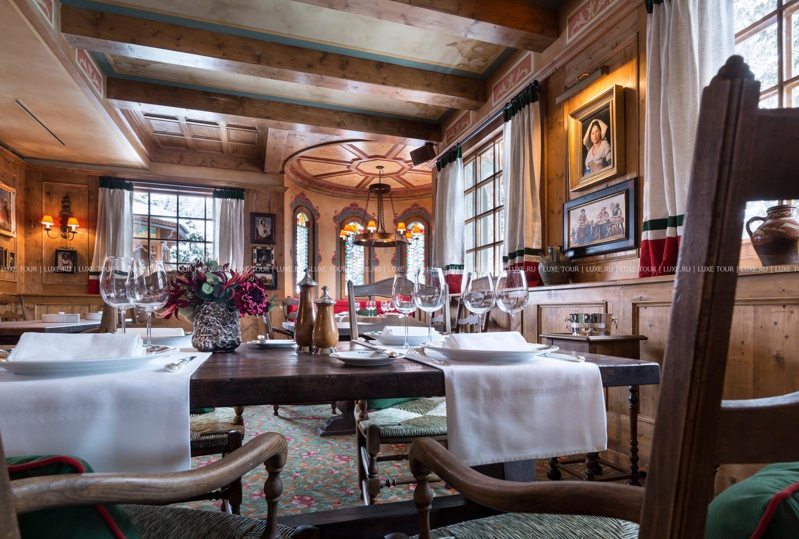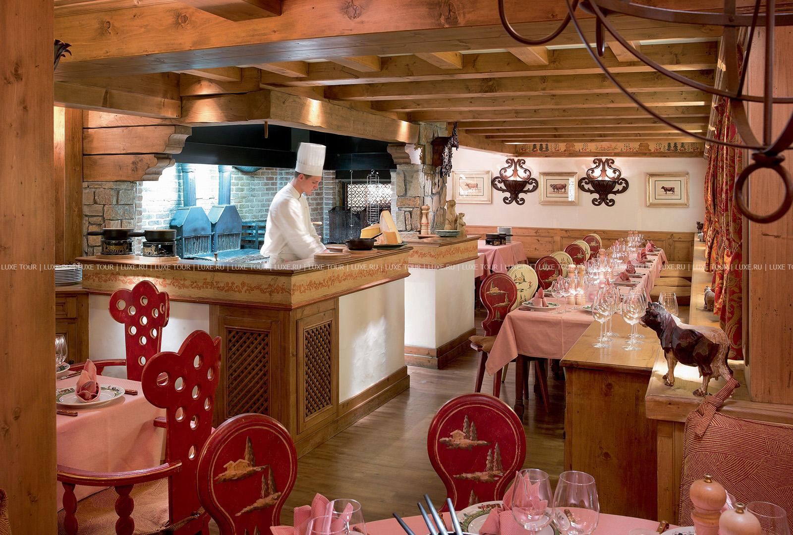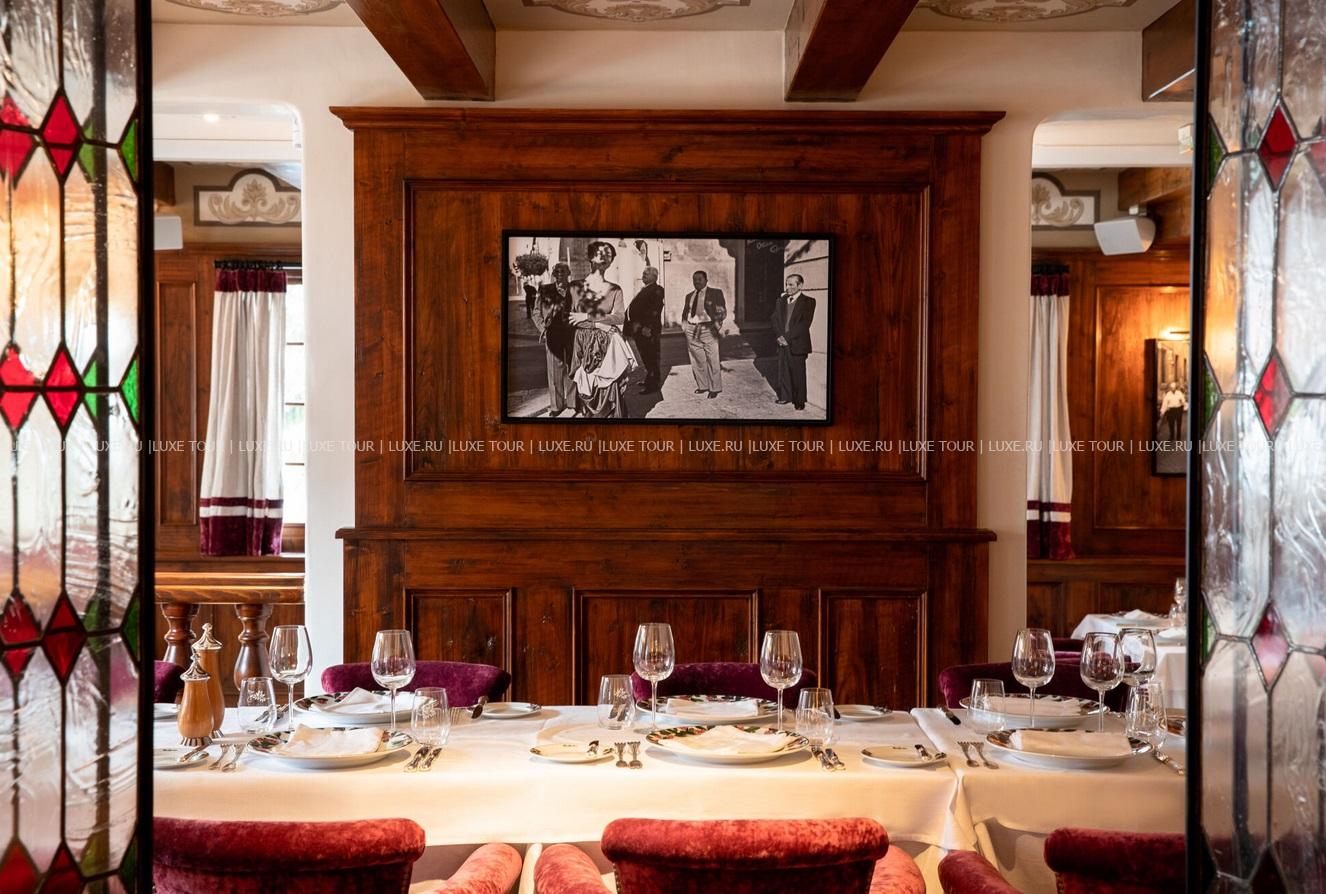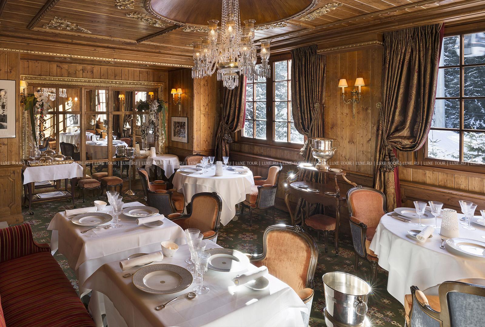 • La Cave Des Grands Crus – обеденный зал в погребе шале, где проходят приватные ужины с дегустацией раритетных вин.