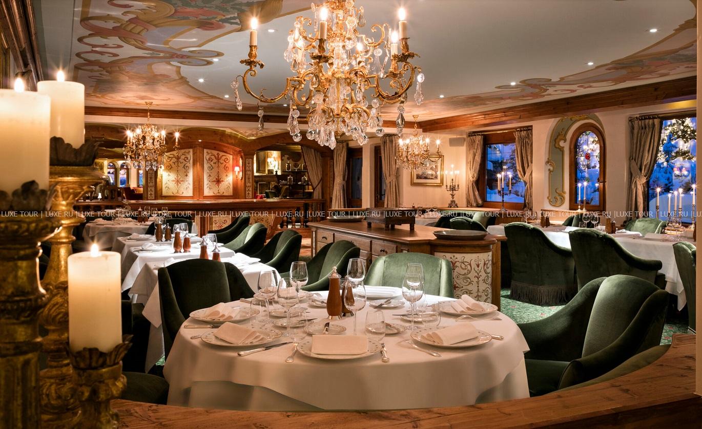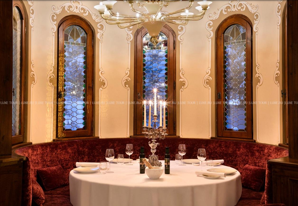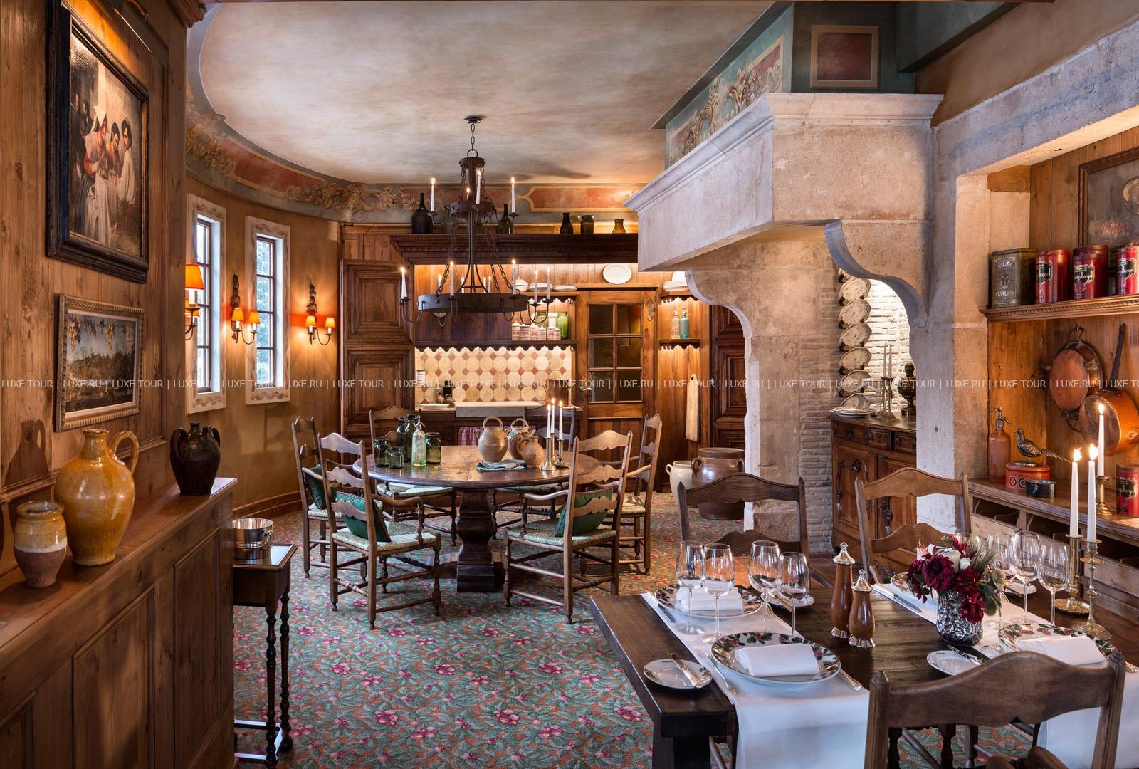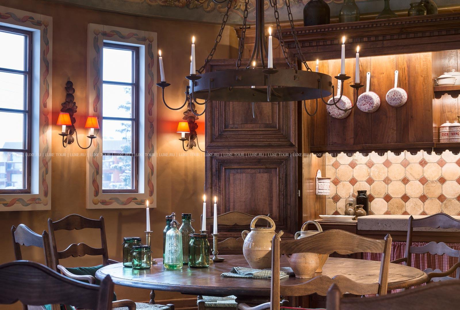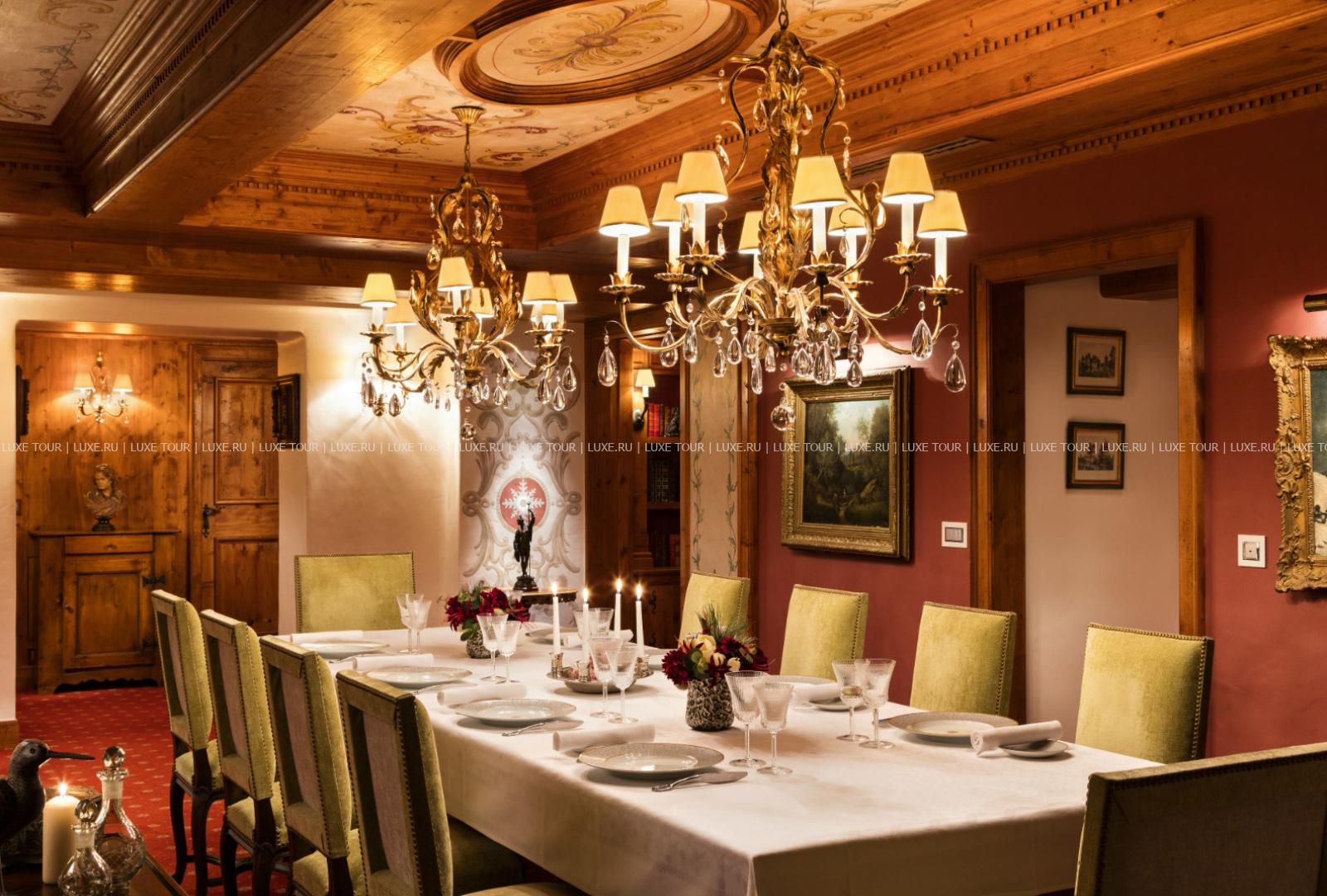• La Cave Des Grands Crus – обеденный зал в погребе шале, где проходят приватные ужины с дегустацией раритетных вин.