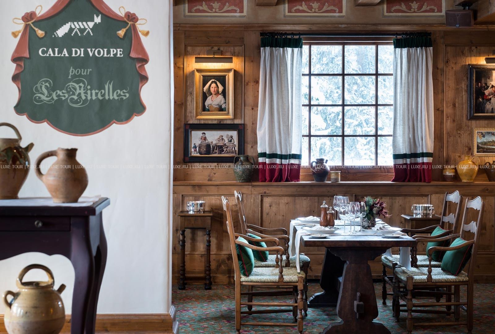 • Гастрономический ресторан La Table des Airelles предлагает изыски французской кухни, которыми в хорошую погоду можно насладиться на солнечной террасе с видом на горы.