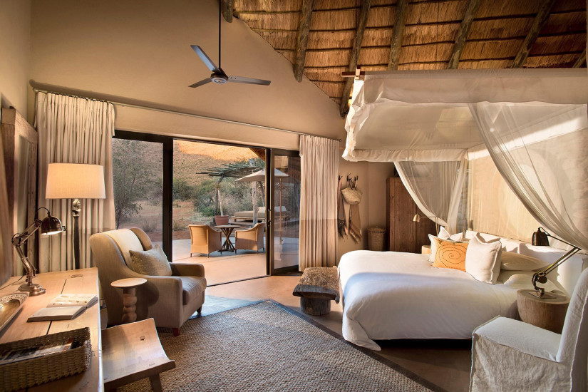 - В отеле 9 коттеджей класса "люкс", а также отдельный коттедж Tarkuni. 9 коттеджей расположены в основной части отеля – The Motse, своеобразной африканской деревне. Все коттеджи оформлены с элегантной простотой, типичной для охотничьего заказника: просторные каменные домики, покрытые соломой, интерьеры которых выполнены в светлых тонах в европейском стиле, полы имеют ковровое покрытие. В коттеджах может пребывать не более чем 30 гостей одновременно. Отдельный большой коттедж Tarkuni расположен на некотором удалении от комплекса и обнесен каменной стеной.