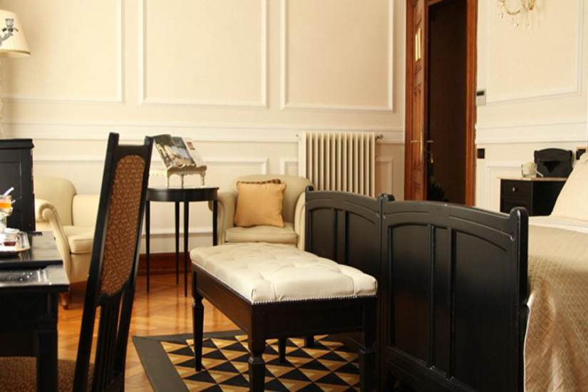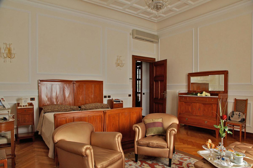 В отеле 35 номеров различных категорий, включая Guest Room и Suite. Интерьеры номеров воссоздают утонченную атмосферу аристократической резиденции: антикварная мебель, великолепные ковры и ткани, натуральное дерево, лепнина, хрустальные люстры и изысканная живопись на стенах, из номеров открывается изумительный вид на озеро и старинный парк.