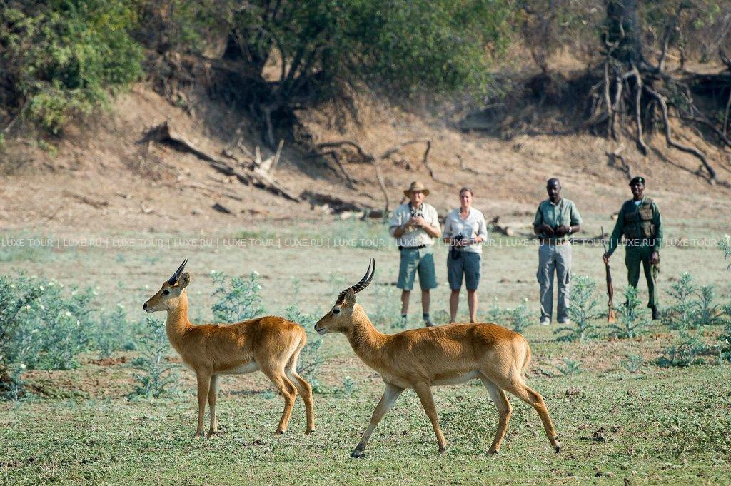 Гостям предлагаются автомобильные сафари (специально оборудованные автомобили с открытым верхом), которые проводятся не только днем, но и ночью, что особенно интересно, так как именно ночью можно увидеть большинство хищников. Желающие еще ближе познакомиться с дикой природой могут отправиться в пешее сафари в сопровождении опытного гида. Гости также могут посетить близлежащую деревню Каваза, школа в которой открыта и работает благодаря средствам от отеля.