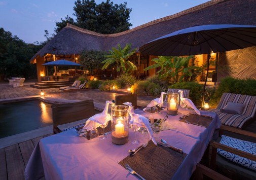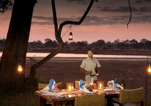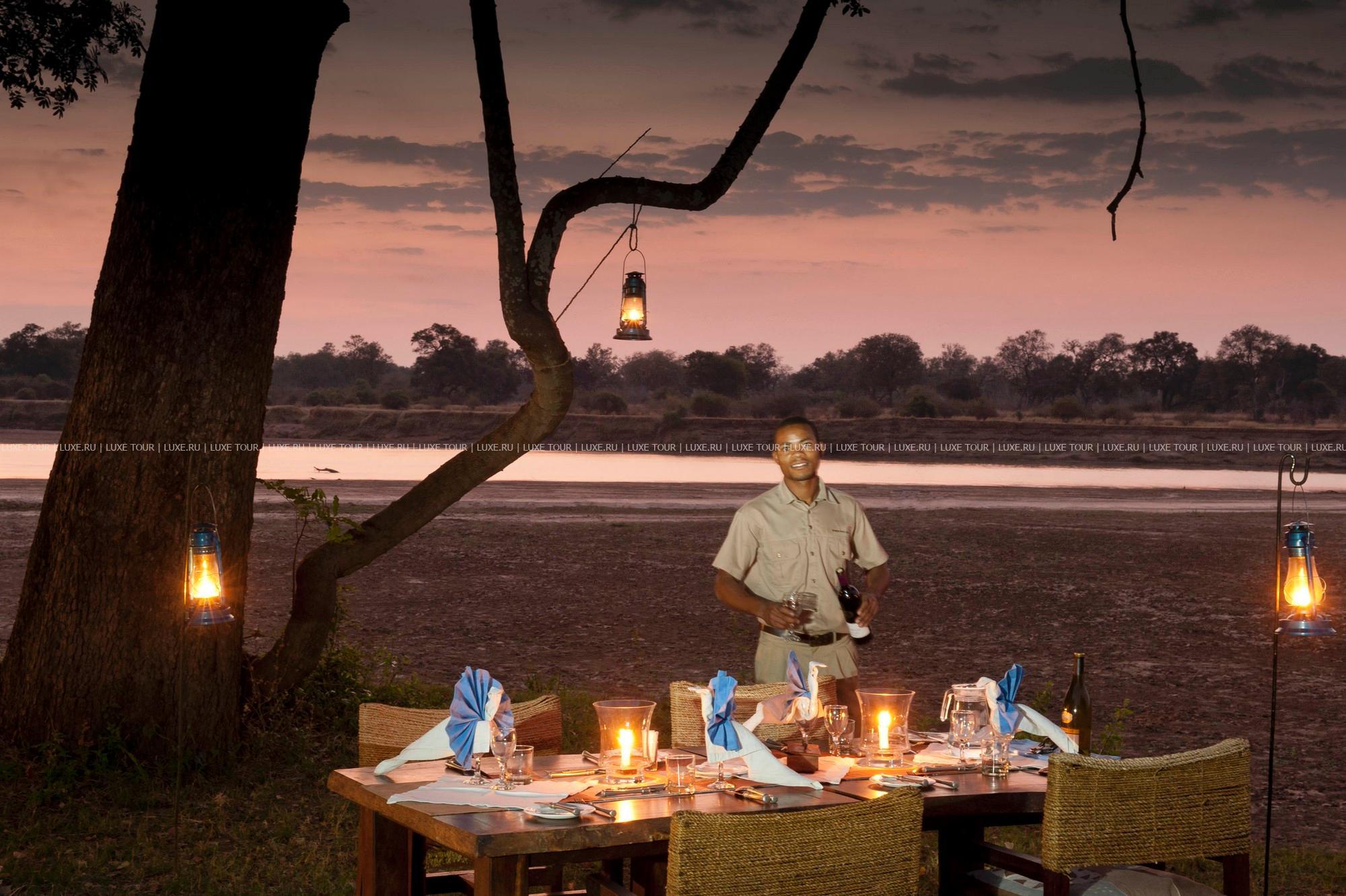 Завтраки, обеды и ужины сервируются в столовой. В меню – оригинальные блюда европейской и африканской кухни, разнообразные вина. Иногда ужины сервируются в буше или на берегу Луангвы. Также для гостей устраиваются пикники.